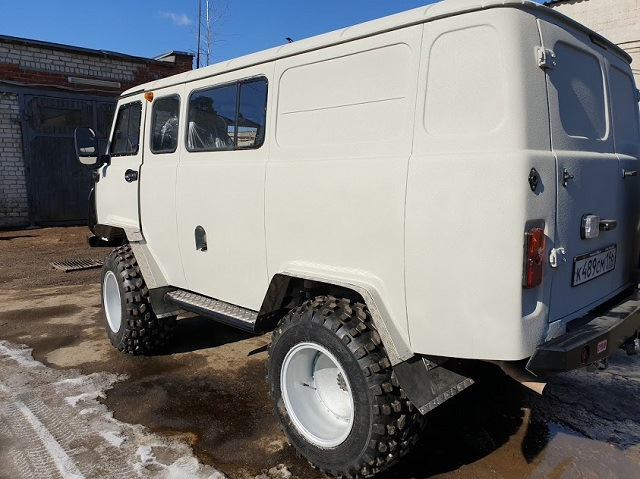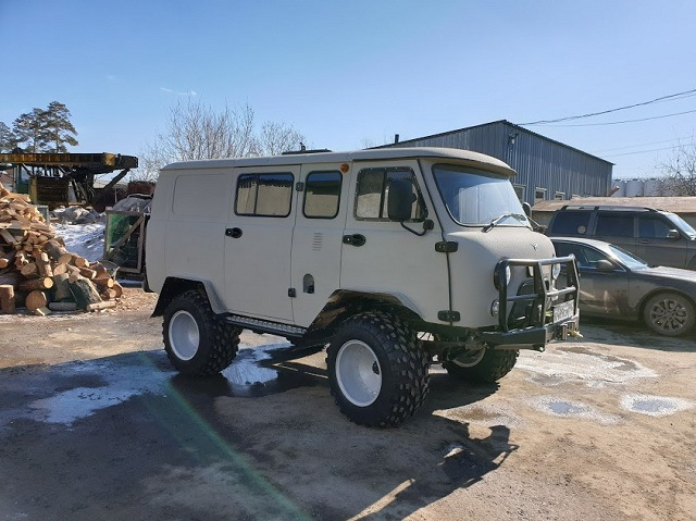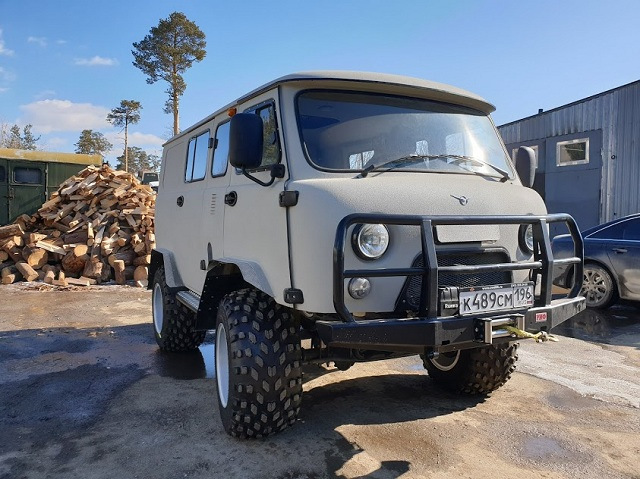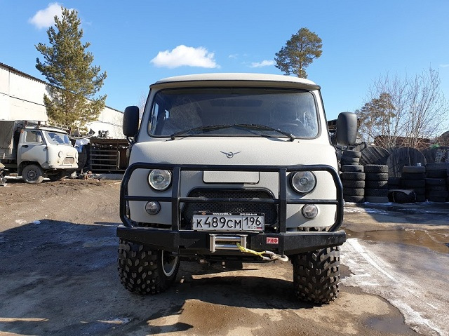 Сергей на УАЗиках всю сознательную жизнь и за 50 лет он их повидал немало. Заядлый охотник и рыбак говорит, что альтернативой Буханке может быть только новая Буханка)) Выбрал он нынче комплектацию 6 мест и грузовой отсек, чтобы было комфортно вчетвером и трофеи салон не запачкали. Забирается он, обычно, в глухие места где заболоченных участков попадает достаточно. Не болотный "ковер", конечно, но влажные низины, заброшенные лесорубами дороги и смытые мостики — это в порядке вещей. Для уверенного движения тяжелого автомобиля нужен дорожный просвет 40-50 см, шины с крупными грунтозацепами и с минимальным давлением на грунт, поэтому выбор свой он остановил на шинах низкого давления Авторос MX-TRIM 900х450х18. Если приобретать колеса в сборе, то диски сразу оборудованы внутренним кольцом бедлоком, которое не даст покрышке разбортоваться при движении на низком давлении. Очень, очень полезная штука! Еще один мотив к выбору этих шин это возможность, если потребуется, установить обычные 35" МТ-шные колеса. Кстати, регистрировать изменения для передвижения по дорогам общего пользования нужно именно на МТ-шках, иначе придется изменять тип ТС на спецтехнику со всеми вытекающими моментами.