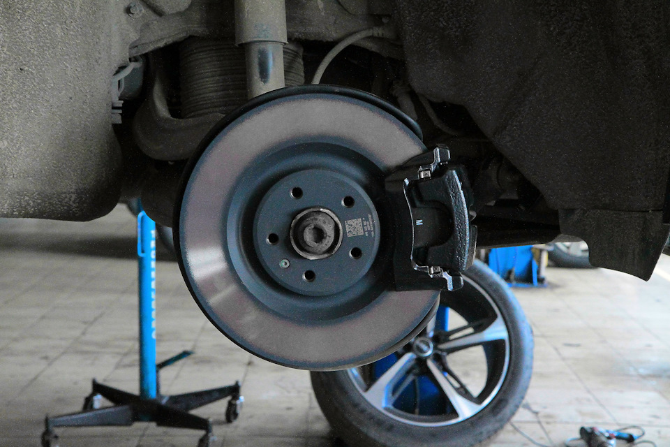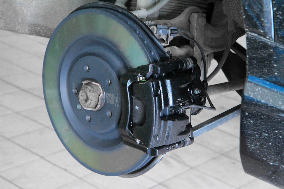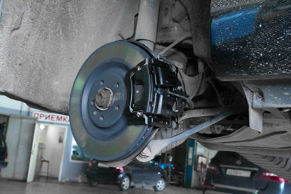Ситуация с задними тормозами следующая — на авто установлены диски 330мм с суппортом в который встроен электроручник. Соответственно суппорт с электроручником мы убрать права не имеем — должно все работать.