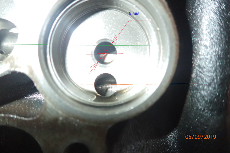 Немой вопрос:» Зачем нужно такое отверстие ?» )) довольно быстро находится ответ, в виде проходного сечения масляной форсунки .