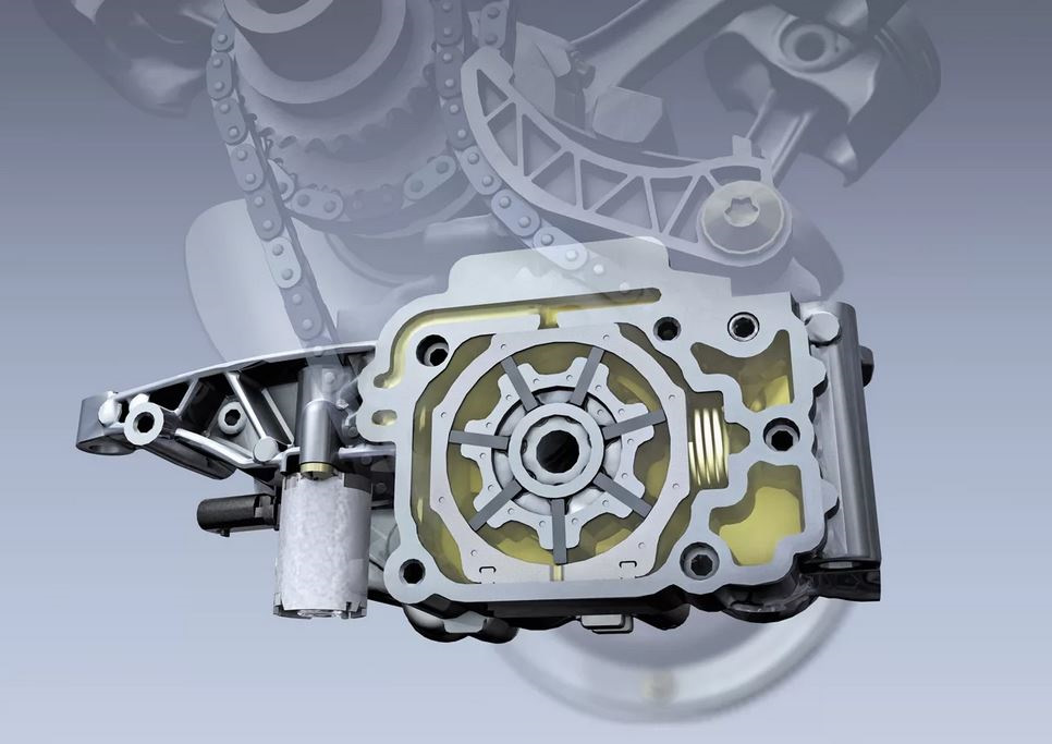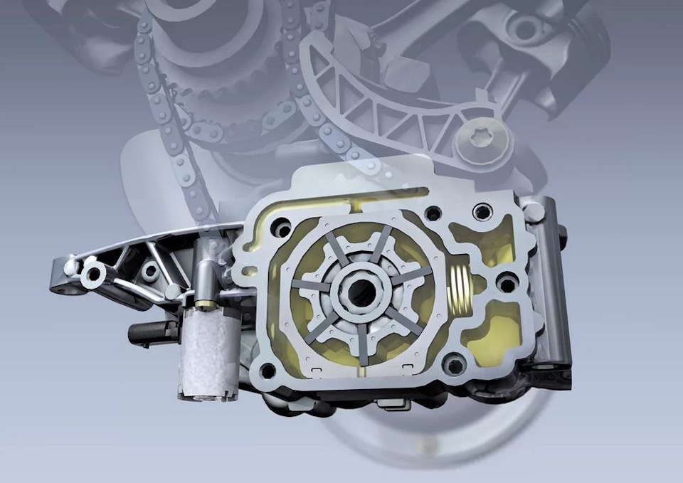 Бросается в глаза слишком большой размер электромагнитного клапана подачи масла на форсунки охлаждения поршней, по сравнению, с ранее выложенным аналогичным насосом на V8 или на ДВС Ауди . Все объясняется довольно просто, вместо использования обычной, плунжерной переключающей гидравлической системы, разработчики решили применить фронтальную поршневую . Учитывая диаметр канала .