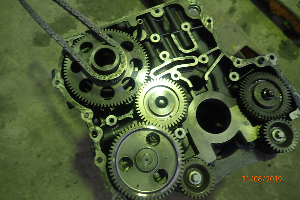 …учитывая размер балансирных валов и их привод получилась довольно массивная конструкция. Одновременно стало понятно )), что решение компоновки привода масляного насоса как, например здесь (тот же производитель, но другой мотор -V8) .