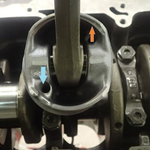 Настораживает, плотная, практически беззазорная компоновка «бобышек» поршня к верхней головке шатуна и отсутствие канала для смазки поршневого пальца в самом шатуне . Конечно изготовить такой шатун гораздо проще, но хочу напомнить тот же японский мотор (VQ37), где японцы видимо просто так, от нечего делать, выполнили отдельную форсунку для смазки пальца поршня ? )) .