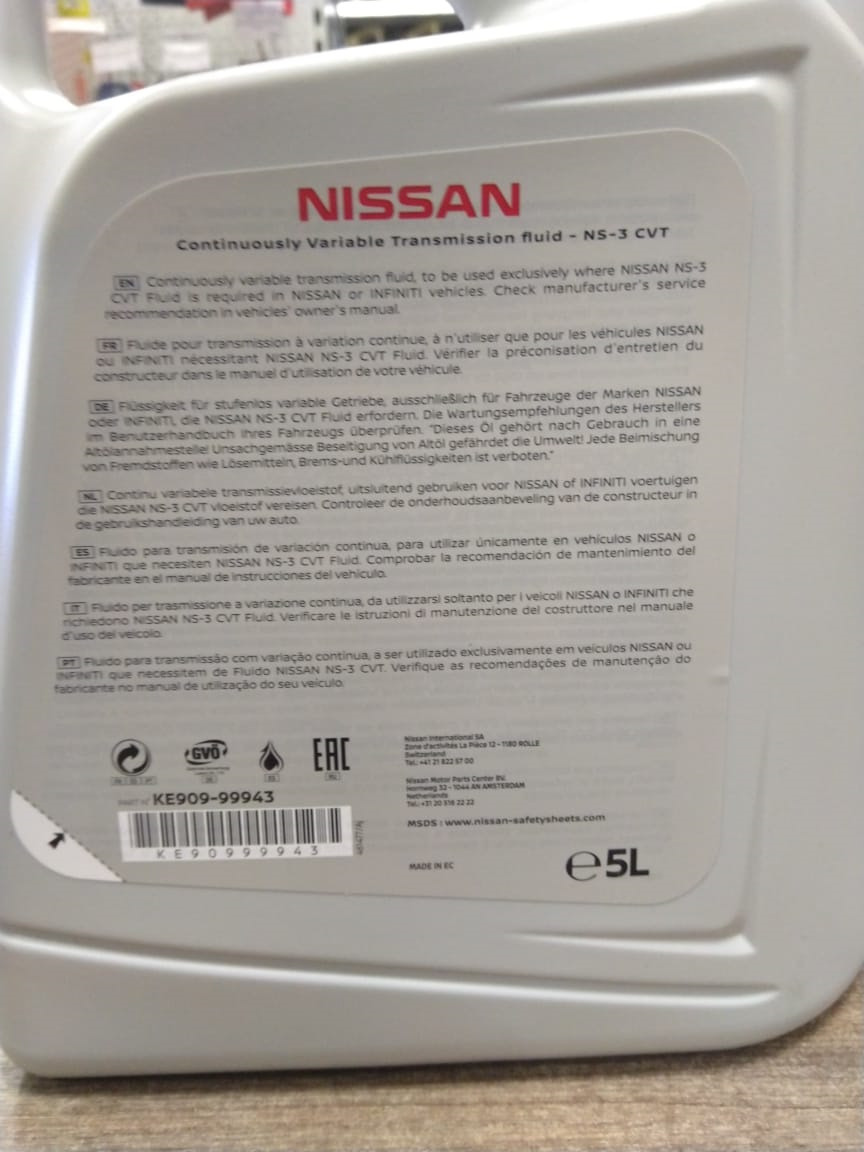 Масло трансмиссионное CVT для вариаторов NS-3 5л NISSAN № KE909-99943-R.