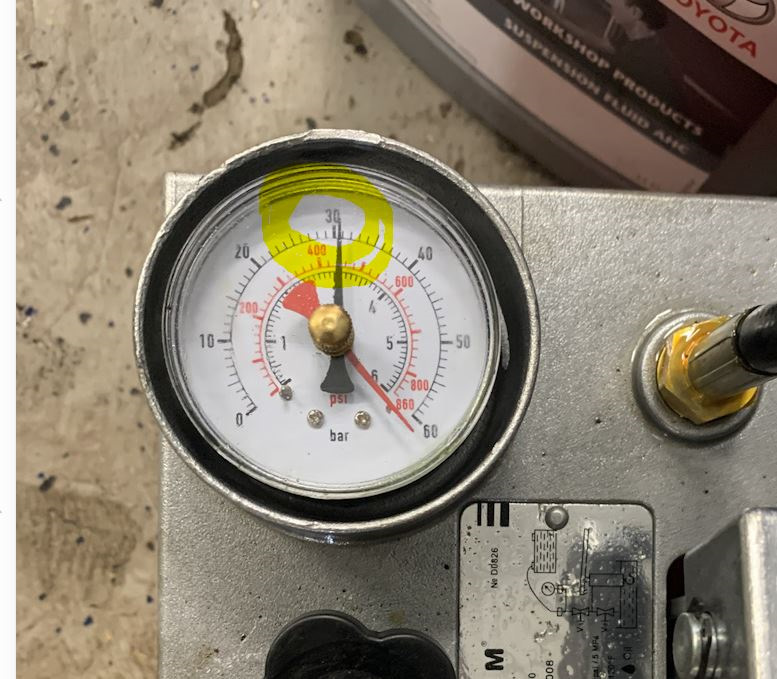 Попутно решили заменить ещё и задний текущий цилиндр системы КДСС так-как владелец ещё пожаловался на то что автомобиль не очень устойчиво ведёт себя на дороге. Показание давления в системе было 2,18 Бар а должно быть от 2,8 до 3,2 при условии наружней температуры 20 градусов.