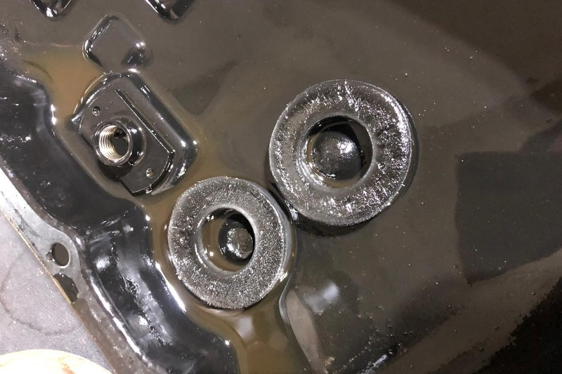 Затем демонтируется поддон Вариатора для осмотра наличия стружки на магнитах – уловителях. Также может быть демонтирован гидроблок для оценки состояния рабочих поверхностей валов (конусов) на предмет задиров.