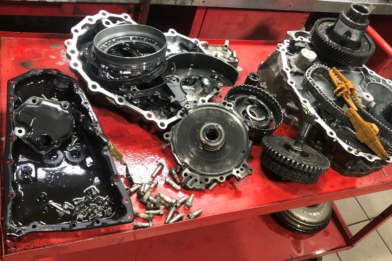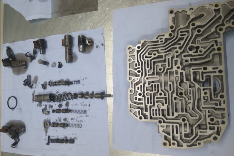 Гидроблок разбирается и промывается от мелких частиц. После сборки вариатора устанавливаются новые фильтры, прокладка поддона, а также все детали одноразовой установки, заправляется новое масло, обязательно промывается весь контур охлаждения вариатора и обнуляется счетчик старения масла.