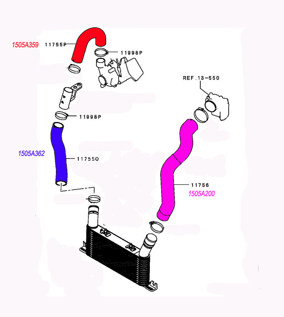 Комплект силиконовых патрубков интеркуллера Mitsubishi PAJERO 4