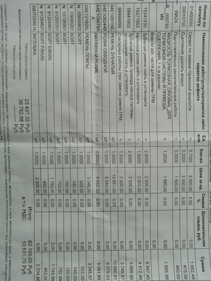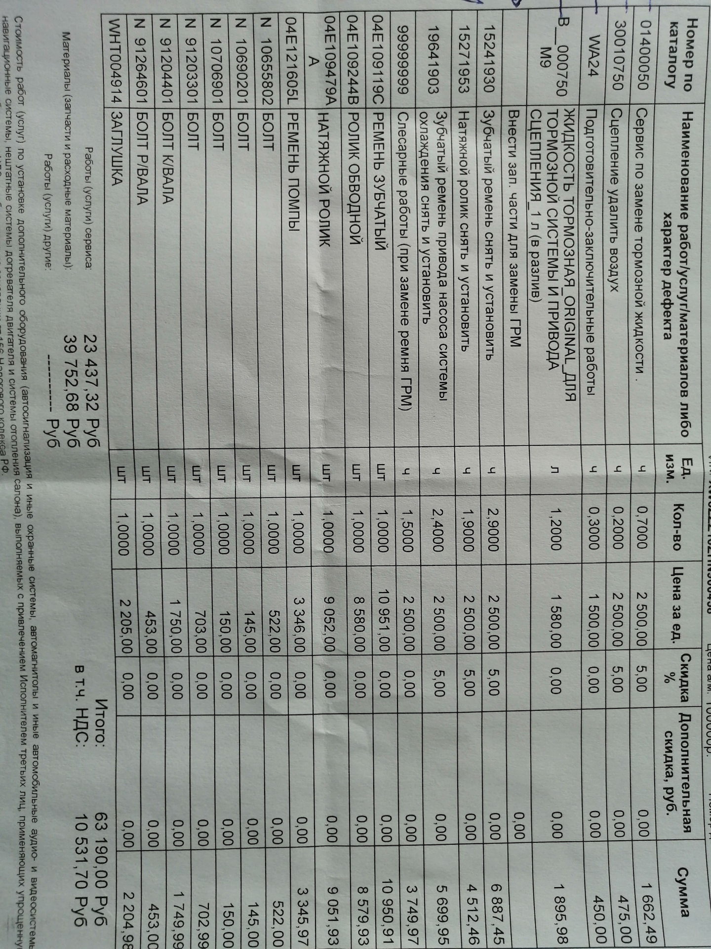 В декабре ездил менять тормозную жидкость, заодно попросил посчитать стоимость запчастей и замену грм с роликами и ременем насоса.