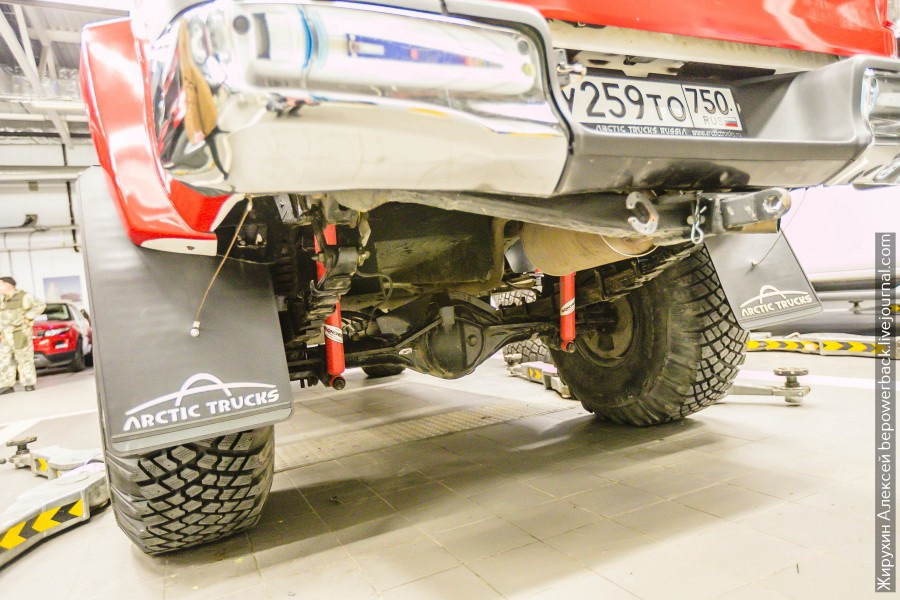 Всю подвеску так же модернизировали. Автомобили должны выдерживать повышенный вес и нагрузку при низкой температуре. Для этого стандартные рессоры и пружины заменили на усиленные и установили специальные внедорожные амортизаторы KYB Skorched4´s.
