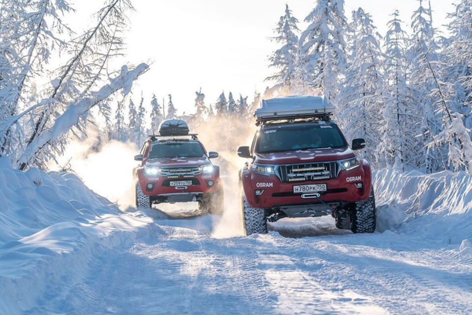 В начале февраля команда путешественников выехала из Якутска на двух внедорожниках — Land Cruiser Prado 150 2019 года с дизельным мотором 2,8 литра на автомате и Hilux 2017 года с дизельным двигателем 2,4 литра на механике. Первая задача — добраться до точки начала официальной экспедиции. Это самая восточная часть Евразии — посёлок Уэлен и мыс Дежнёва.