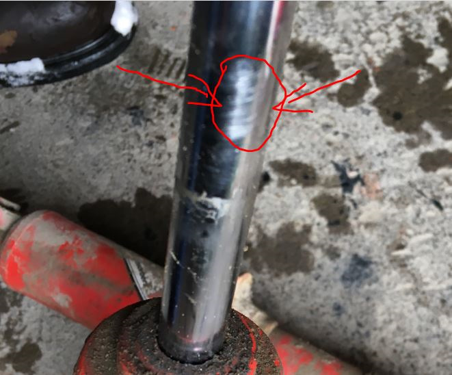 Повторяем, что удаленно диагностировать амортизатор почти невозможно, но на присланном Вами фото есть очень характерная особенность на штоке. На грязь не похоже, но настаивать не будем — качество фото и общее загрязнение не позволяют быть объективными. Для серьезных выводов нужно смотреть в живую.