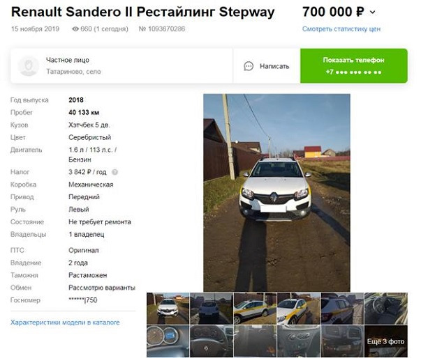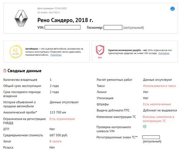 Как работает сервис, покажу на примере Renault Sandero Stepway 2018 года выпуска.