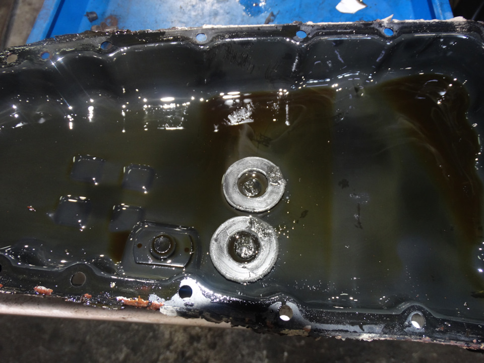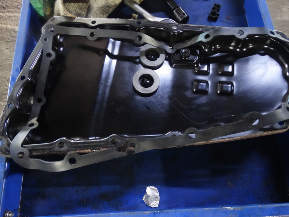 далее откачиваем старое масло, снимаем поддон и старый фильтр грубой очистки