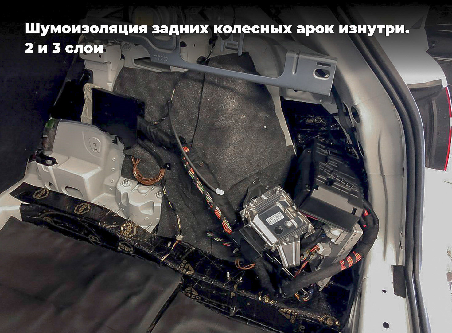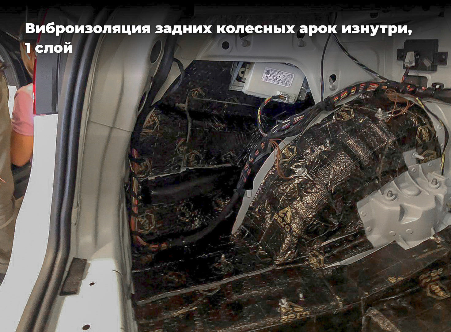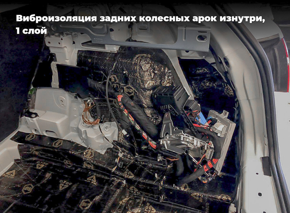 5. Задние арки авто, которые покрывают тремя слоями шумоизоляции Мерседес ГЛЦ – STP AERO (2 мм), Armaflex ACE-06-99/EA (6 мм) и штатным войлоком.