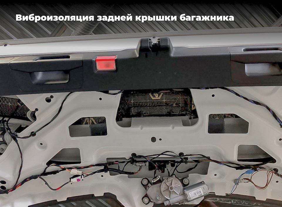 7. Крышка багажника, для обработки которой хорошо подходит Biplast Premium 15A (15 мм). Этот материал обладает хорошей звукоизоляцией. В качестве виброизоляция частично используем STP AERO, аккуратно, немного, чтобы не утяжелить чрезмерно крышку багажника.