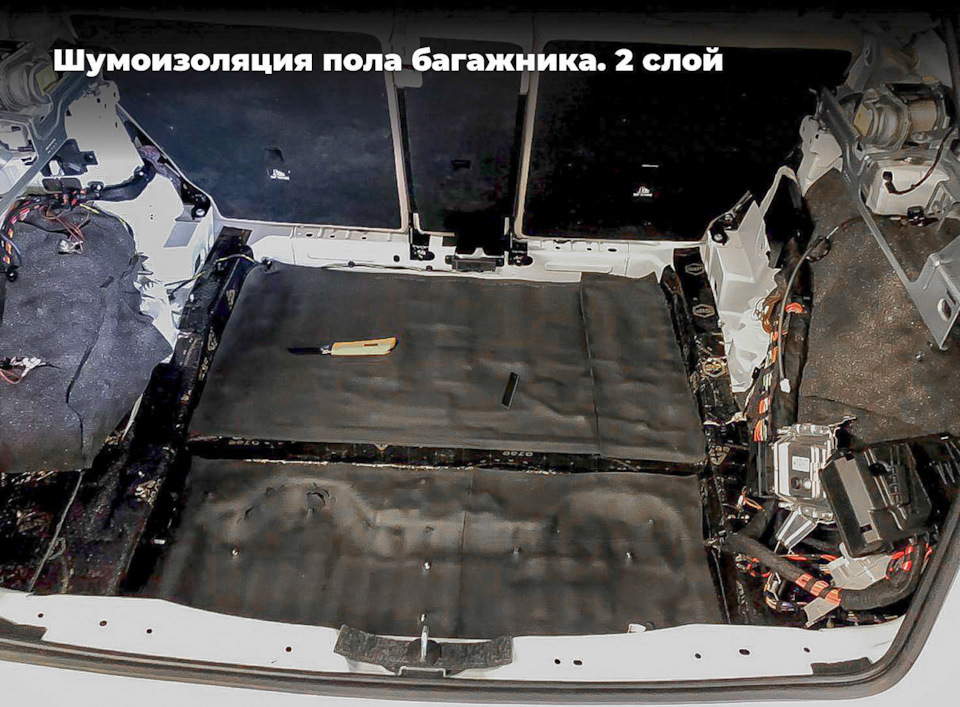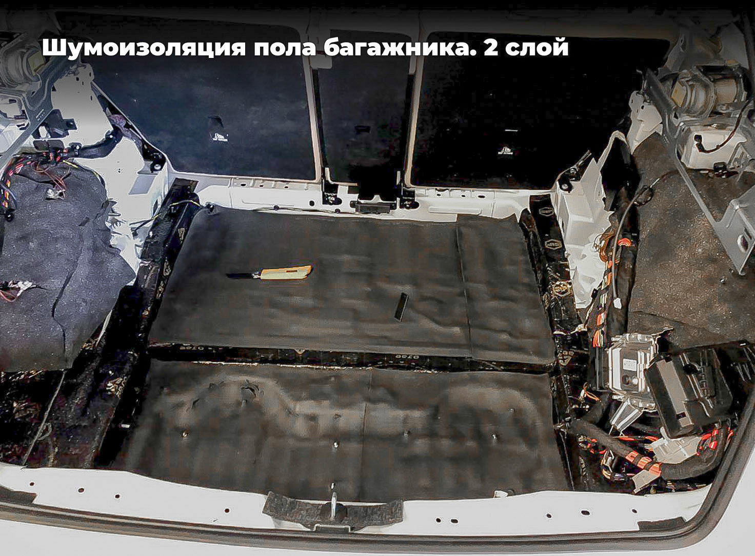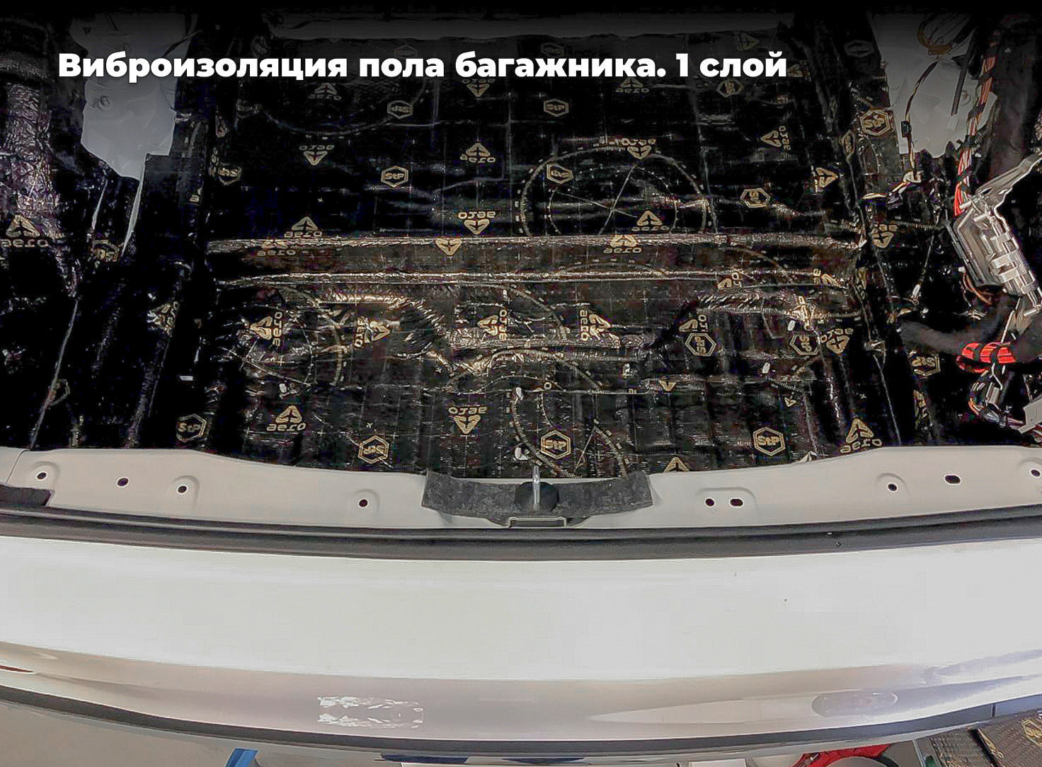 4. Пол в салоне и багажнике. Днище обрабатывается материалами виброизоляционным материалом STP AERO (2 мм) и звукоизоляцией Noise Block.