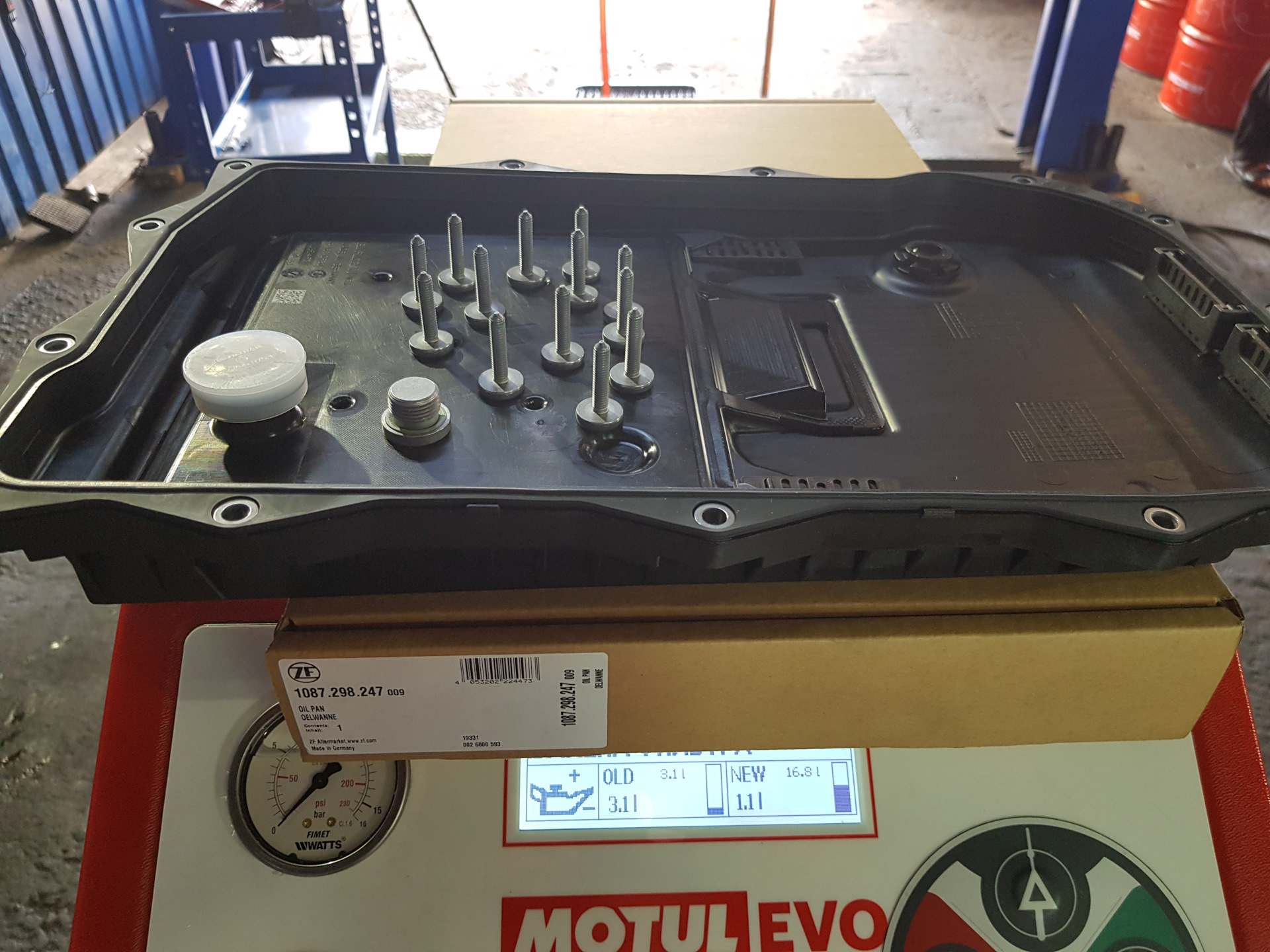 ставим новый поддон, запускаем закачку нового масла