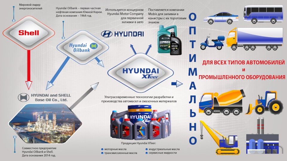 "Универсальные масла и смазки, оптимальны для технического обслуживания автомобилей различных марок (в т.ч. Hyundai и KIA)." — ваша фантазия, не подтверждённая ничем. Они не более оптимальны, чем любой аналогичный продукт. Есть официальное письмо от HMC, где говорится, например, : "HMC recommends only Shell Lubricants to its aftermarket network globally…НОВ is a completely separate company from HMC…Unlike Shell products, the lubricants of HOB have not been tested by HMC in Hyundai engines…"
