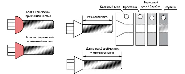 Длина колесных болтов