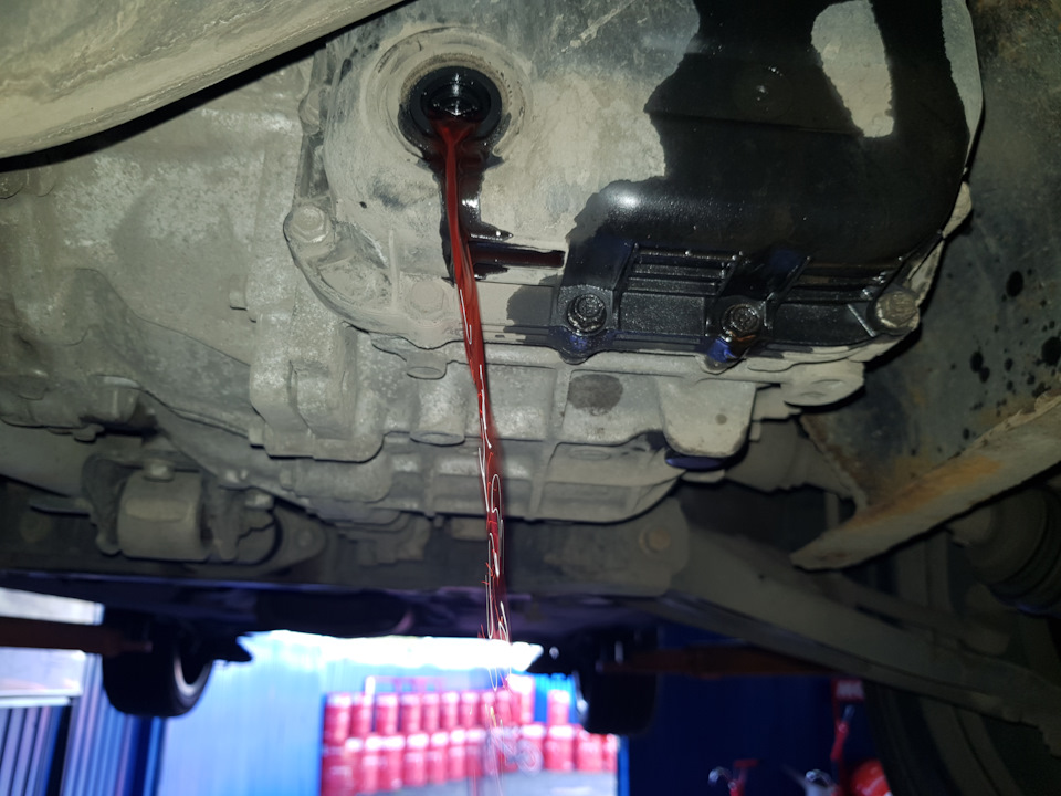 откачиваем старое масло, сливаем остаток, запускаем режим полной замены масла в АКПП