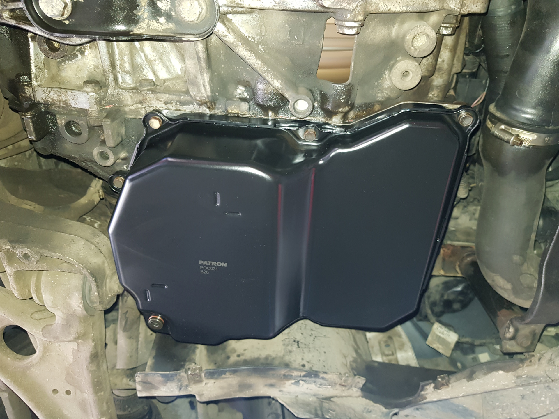 откачиваем старое масло, сливаем остаток, снимаем поддон и старый фильтр.