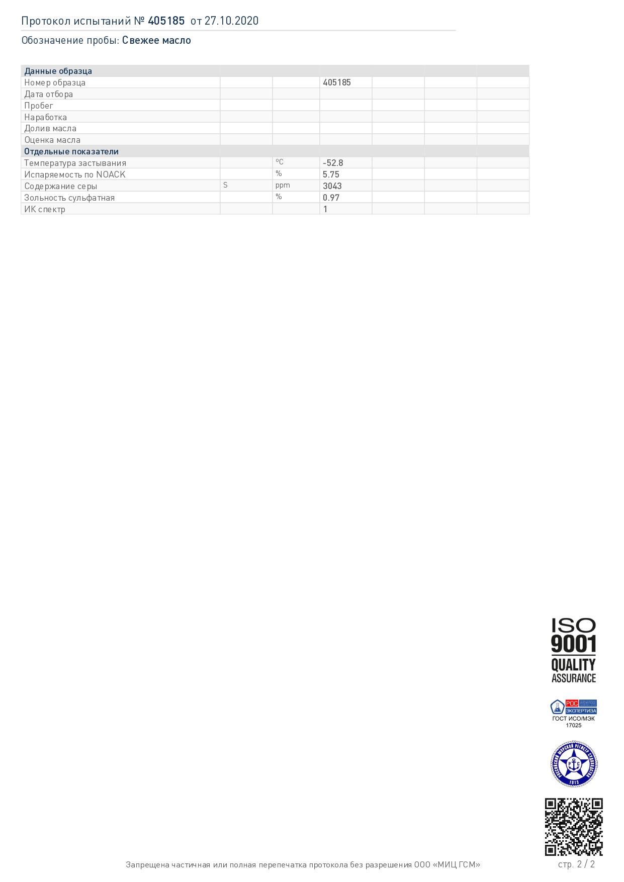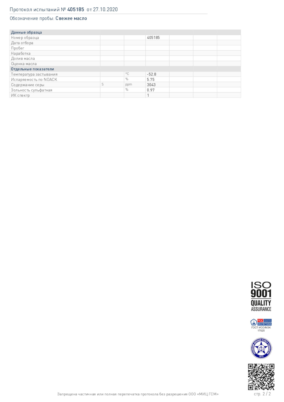 Чтобы исключить предвзятость лаборатории, отправка и оплата тестов масел была от физических лиц.
