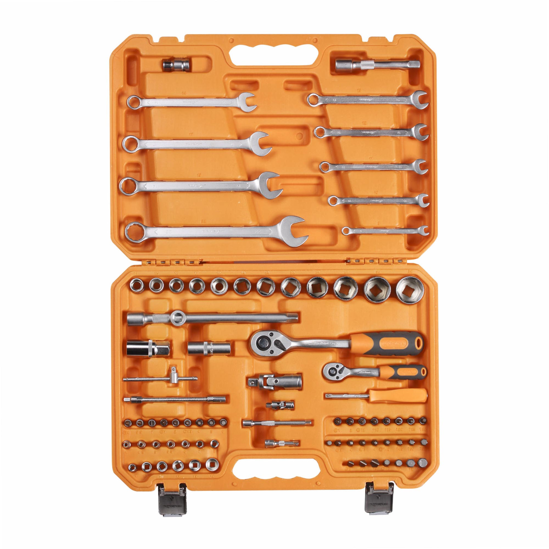 Упакованные в пластиковый кейс наборы инструментов можно возить с собой в багажнике, брать на работу, хранить дома или в гараже. В каталоге вы найдете наборы разной комплектации – от 17 до 137 предметов.