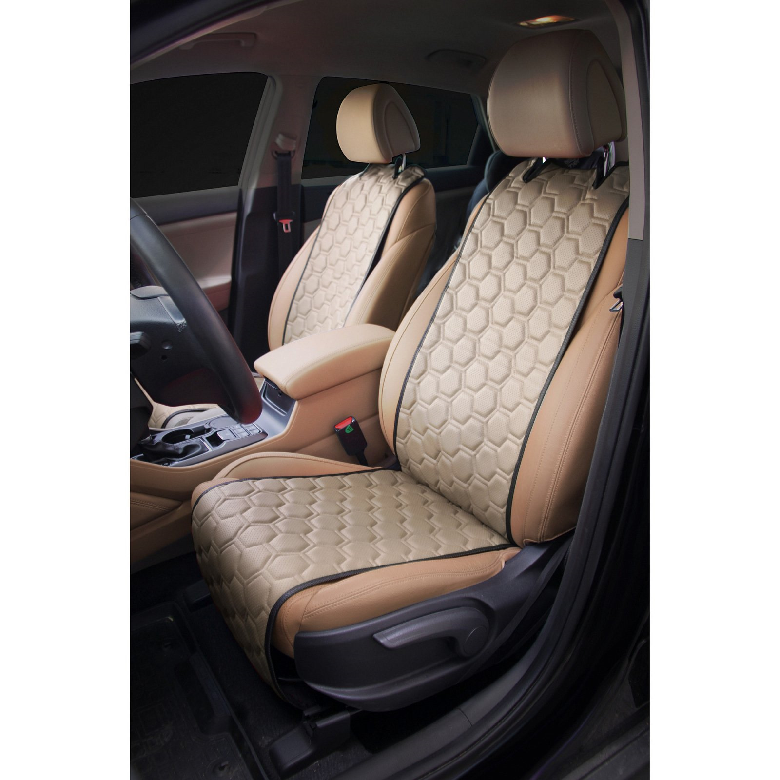 Накидки "Алькантара" сшиты из практичной экокожи. У них стеганый дизайн с красивым и оригинальным рисунком, который отлично смотрится в любом салоне.