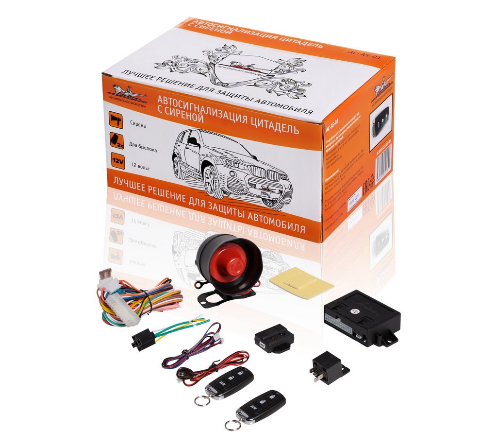 У автосигнализации ЦИТАДЕЛЬ в комплекте сирена и 2 брелока. В функционал системы входят: