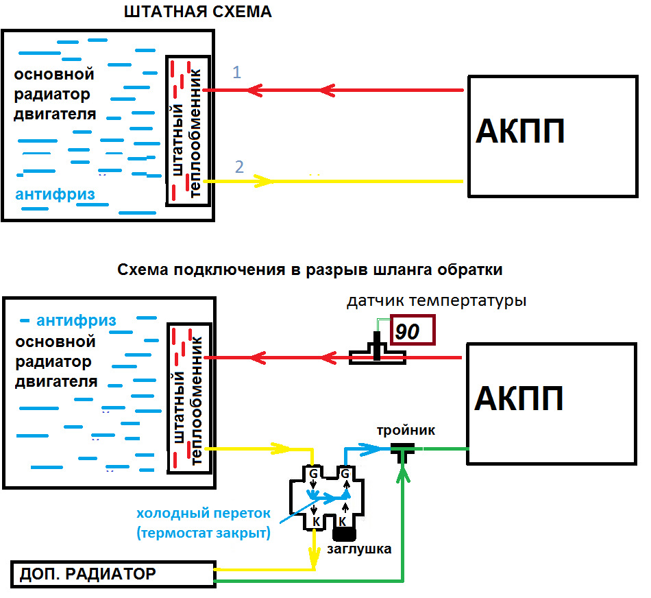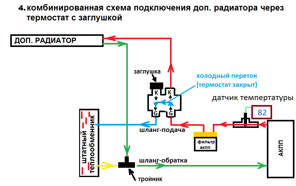 Я так понимаю для акпп не обязательно ставить заглушку на термостате тем самы обрывая контур, а на вариаторе желательно сделать как здесь по схеме, верно?