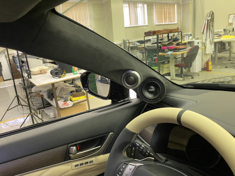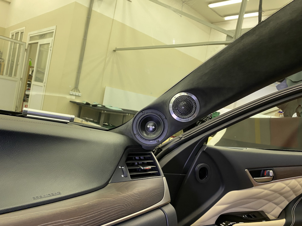 3) Под переделанную акустическую систему сделали и зашили специальные подиумы на стойках лобового стекла: