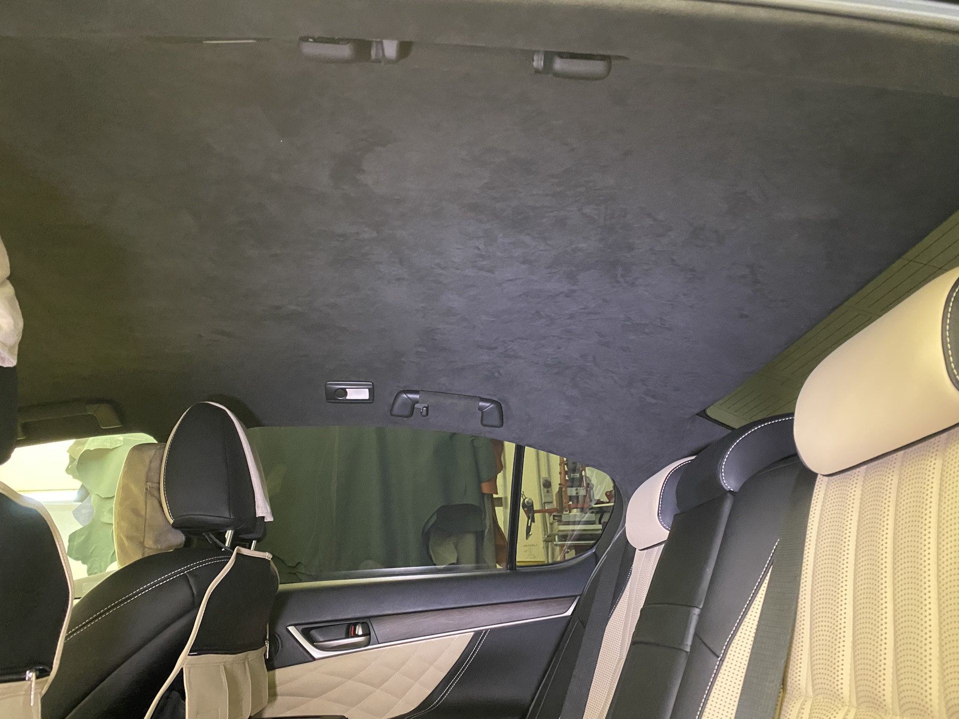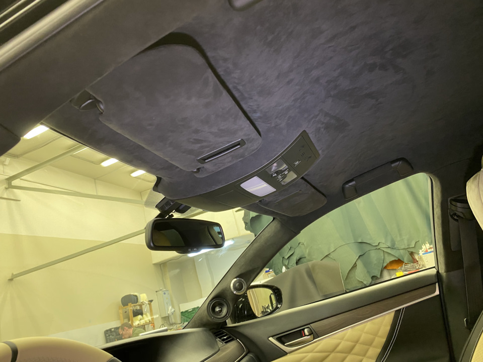 5) Потолок в алькантару с перекраской всех пластиков элементов:
