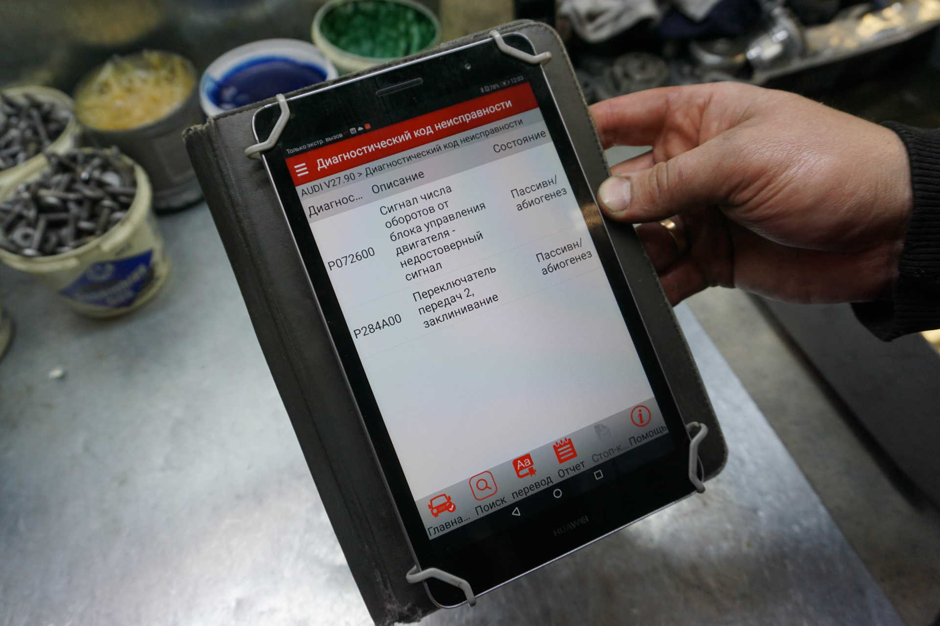 По приезду, мы подключили к бортовой системе сканер и нашли ошибку P284A00 "Переключатель передач 2, заклинивание". Помимо нее также нам выдало ошибку по недостоверному сигналу числа оборотов от блока двигателя.
