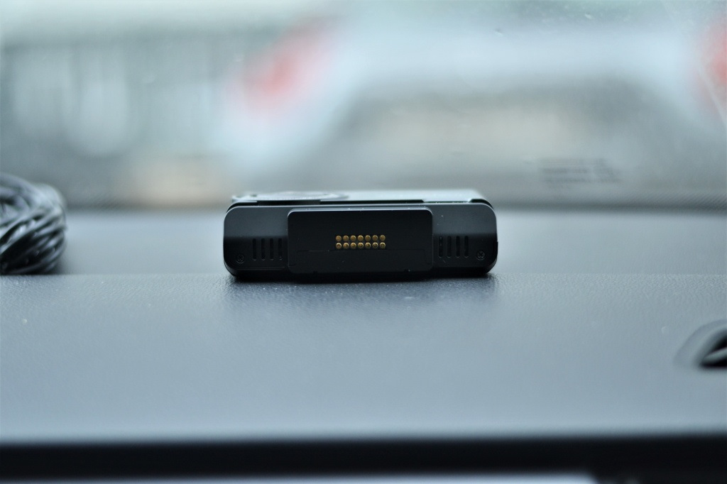 Такой подход позволяет быстро, буквально одной рукой установить и снять устройство без лишних манипуляций. При этом электропитание подается на крепление. Удобно и практично. Когда используется такой тип крепления, сразу возникает вопрос о надежности соединения. Спешим заверить, что в этом плане нет никаких проблем – фиксация составных частей надежная, устройство не дребезжит, и тем более не падает, даже на наших ухабах.