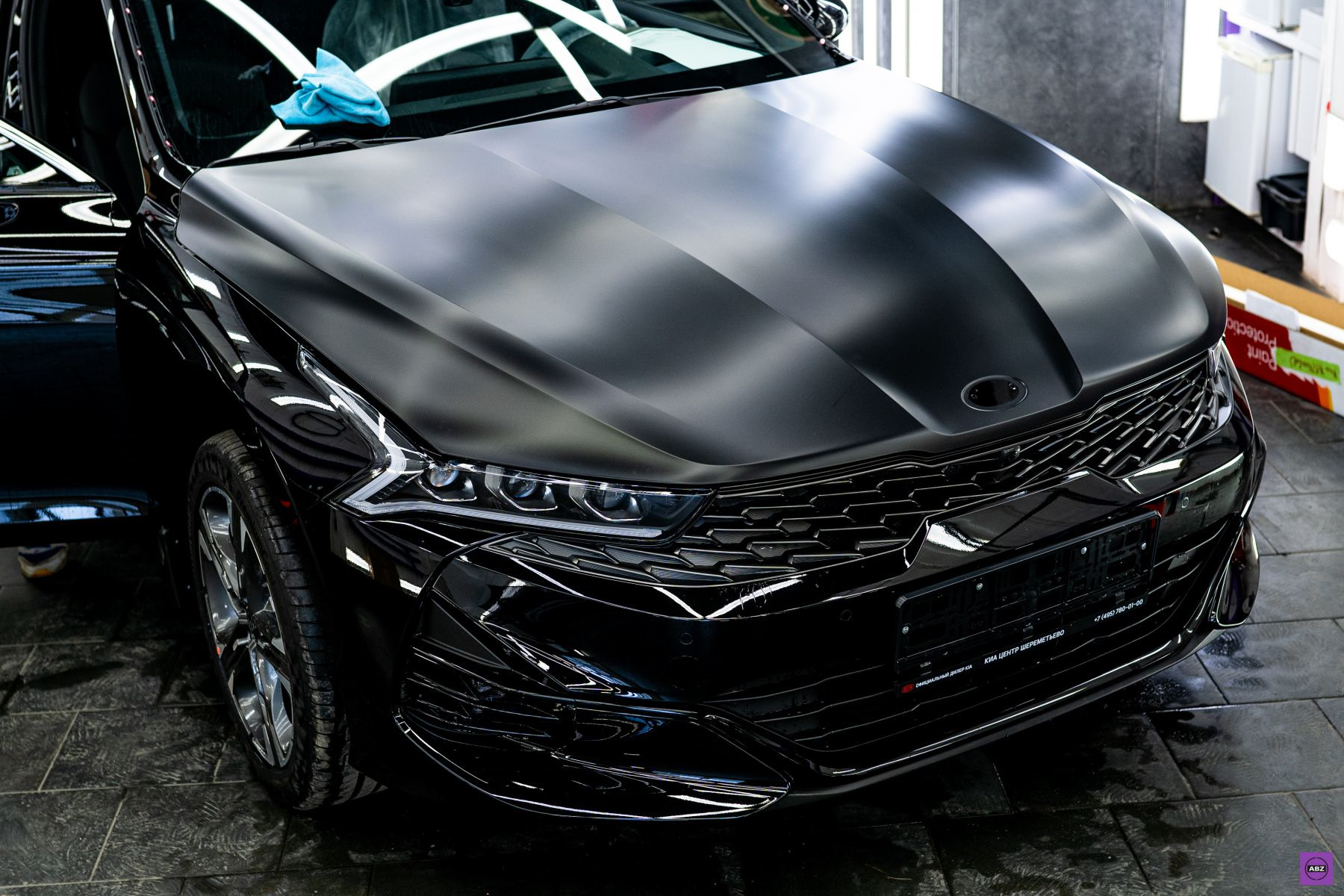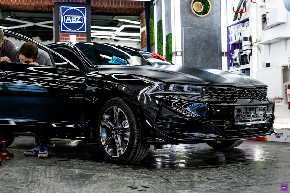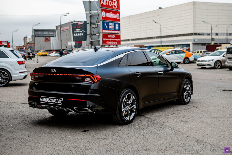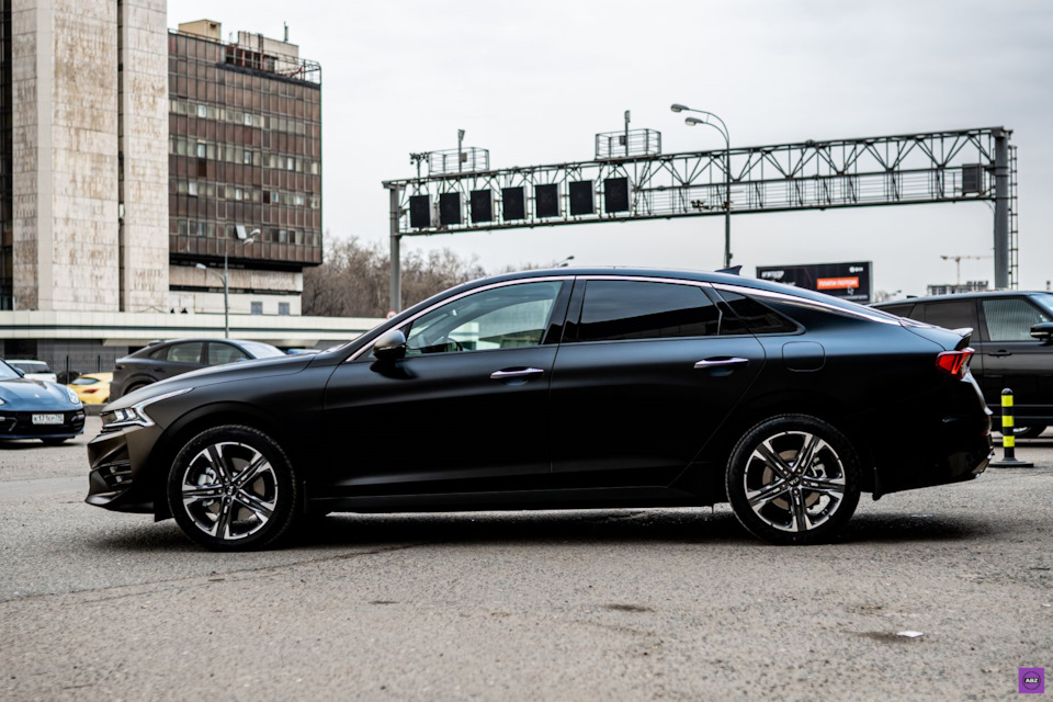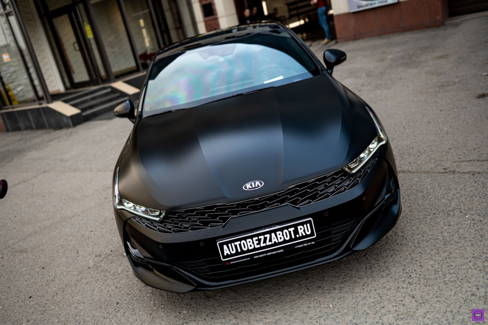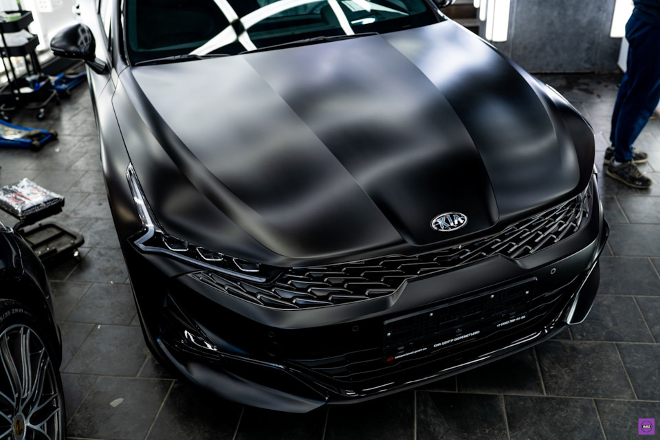 Владелец этого “корейца” выбрал защиту авто матовой антигравийной пленкой. Посмотрите, как лег матовый Llumar Platinum на черную глянцевую поверхность KIA K5. Вы когда-нибудь видели эту модель в таком исполнении? Обратите особое внимание на переднюю часть кузова и решетку радиатора. Как вам такой вариант?