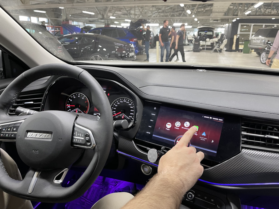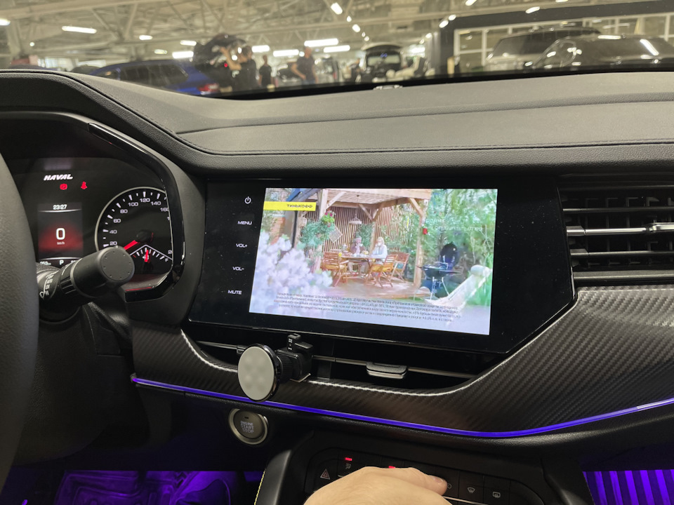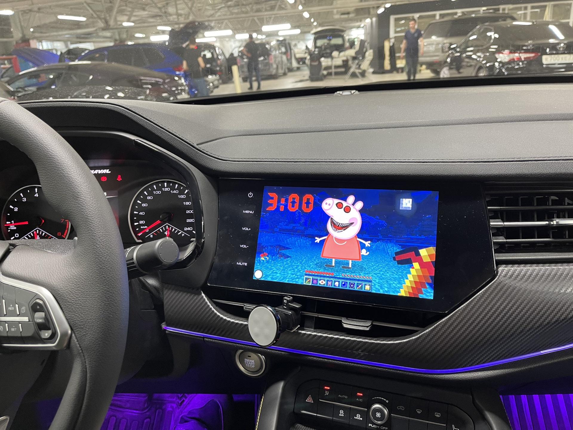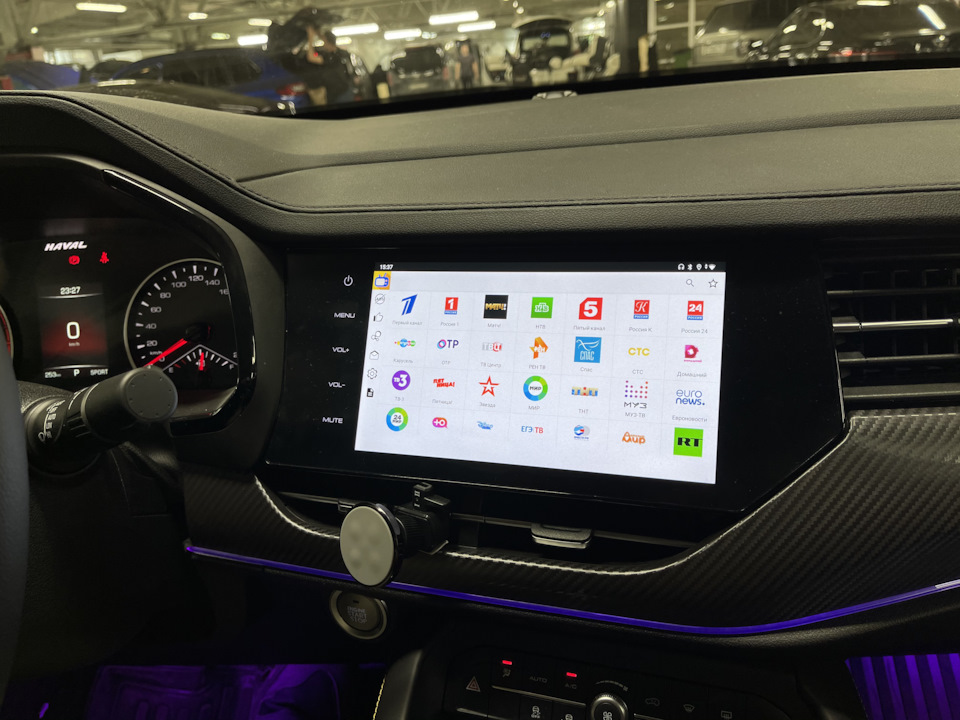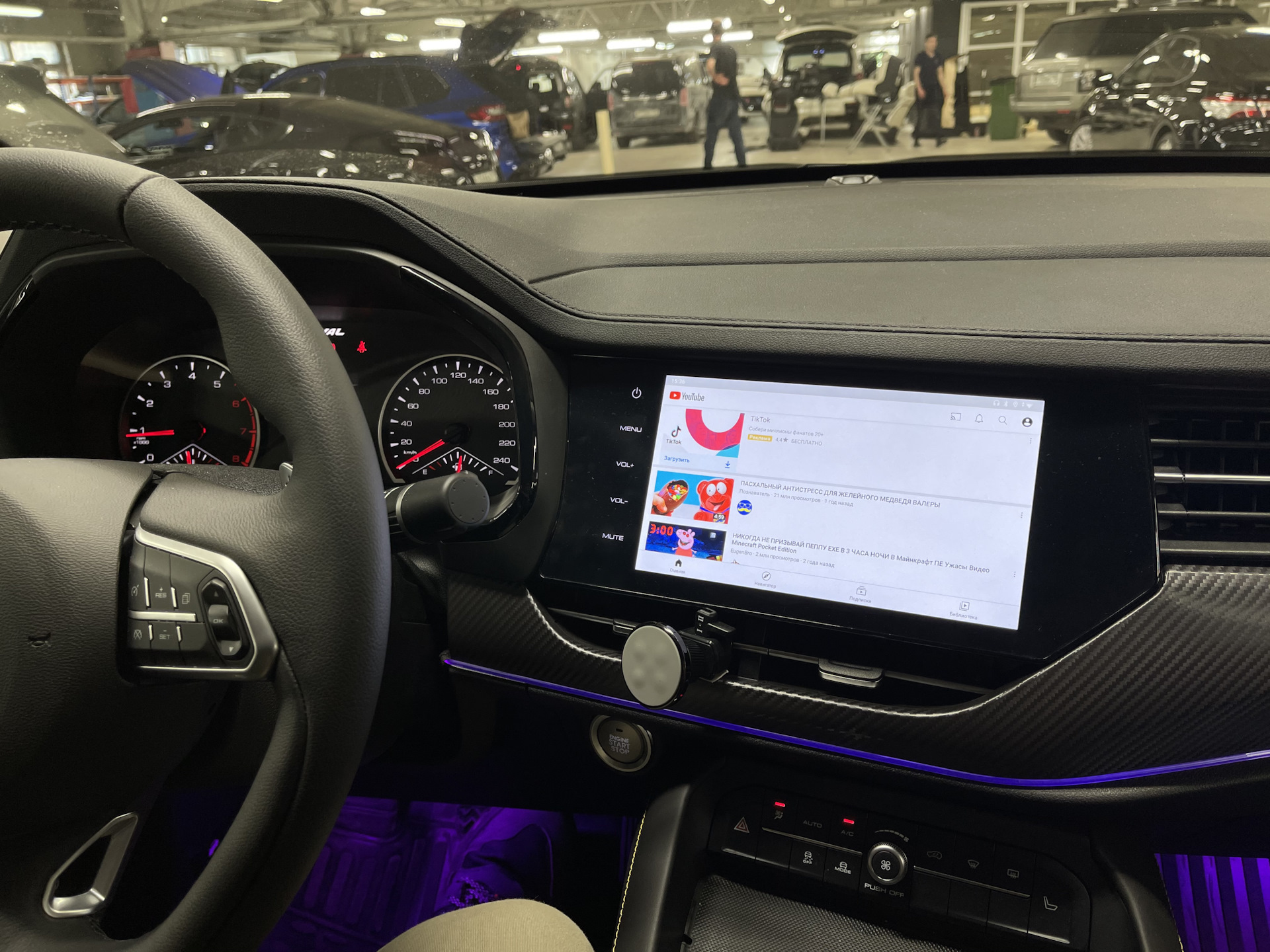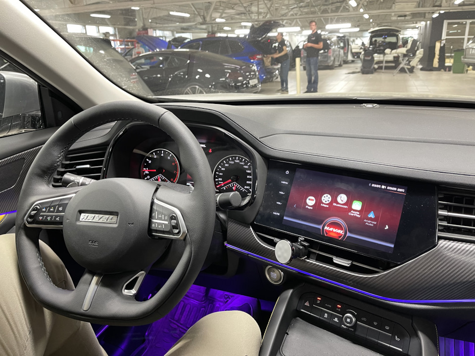 В этот Haval F7 мы поставили доп мультимедиа систему на штатное головное устройство, Amient Light светодиодную контурную атмосферную подсветку и выезжающие электропороги…