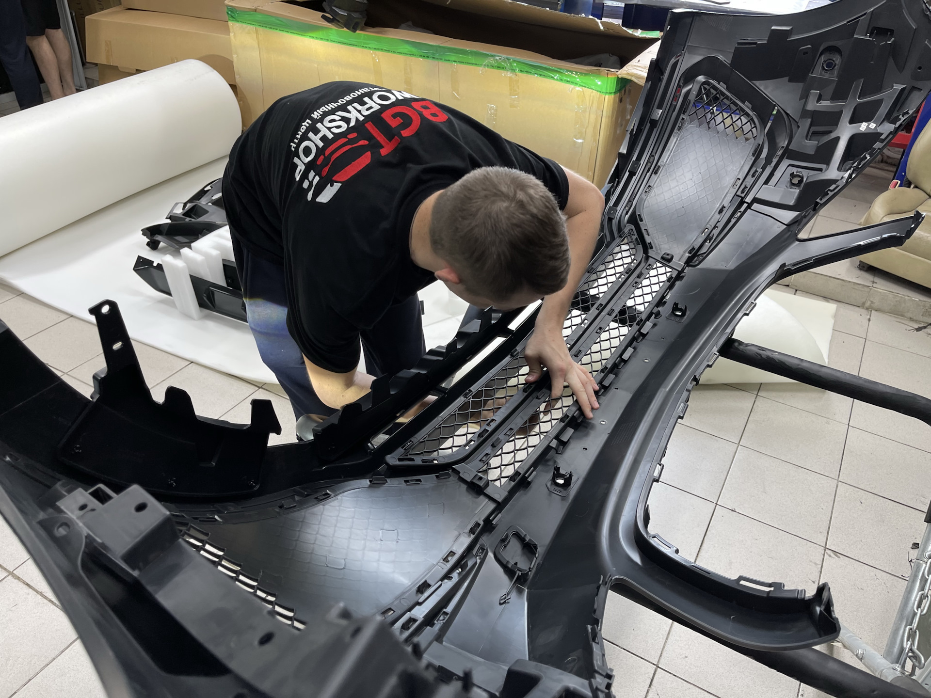 Первый этап установки, который можно назвать "первая примерка" окончен, теперь нужно "немного" подогнать устранить некоторые неровности, щели, настроить сопряжение деталей, потом окрасить и лишь после этого мы будем считать проект готовым и отдадим будущему владельцу и дадим гарантию на срок владения авто!