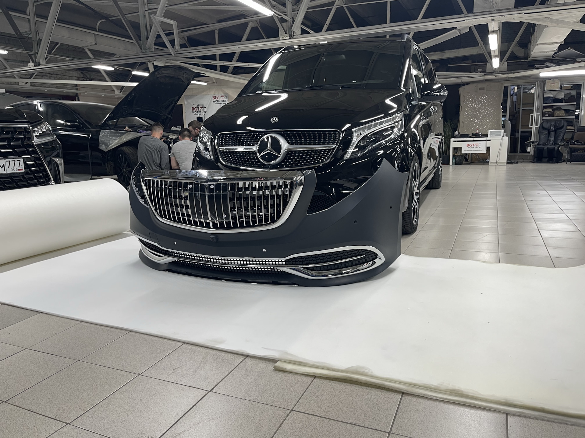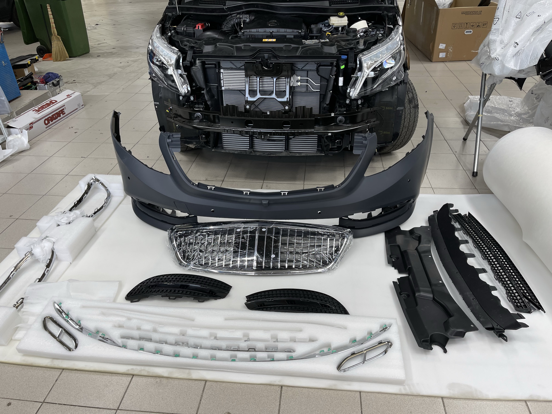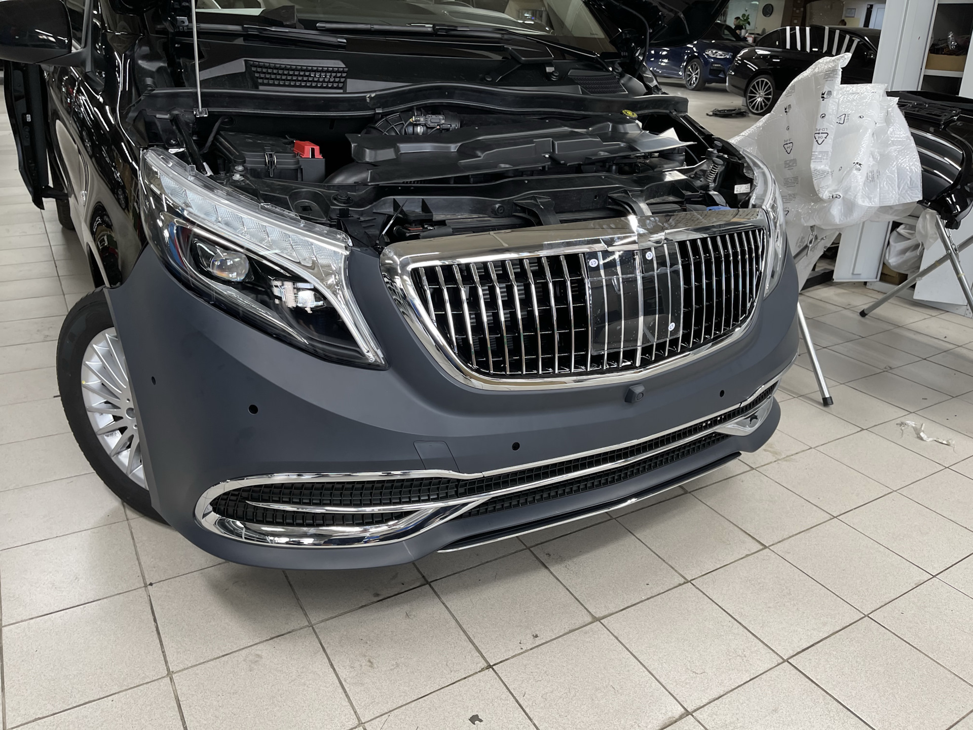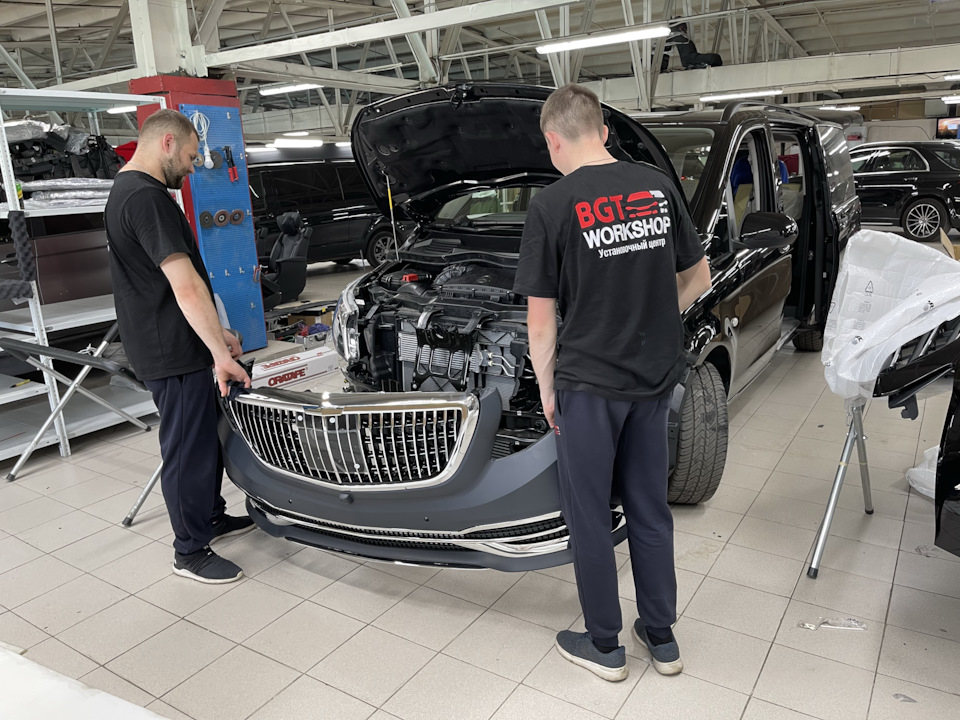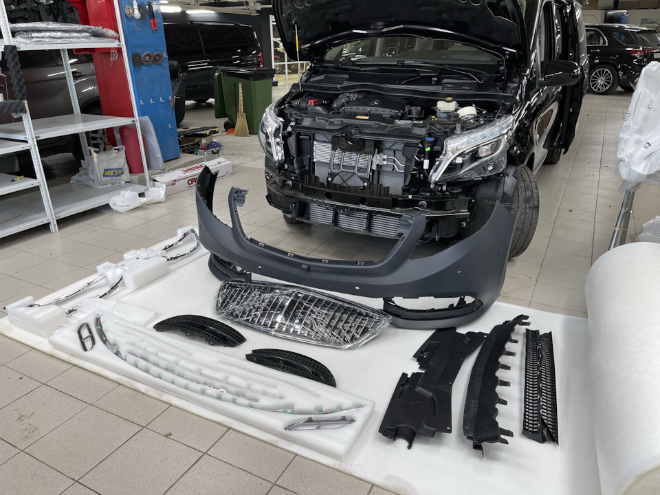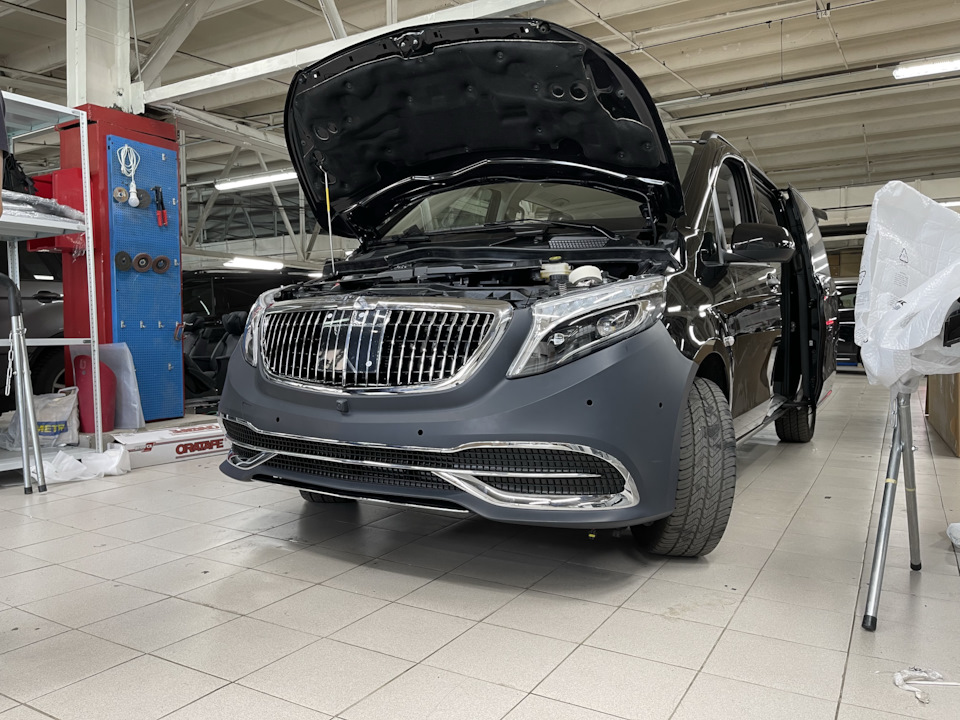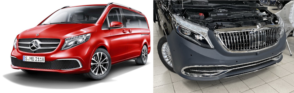 Классный вариант для изменение внешнего вида Мерседес V-Class W447 — Maybach Style за счёт замены переднего бампера, решётки и заднего бампера!