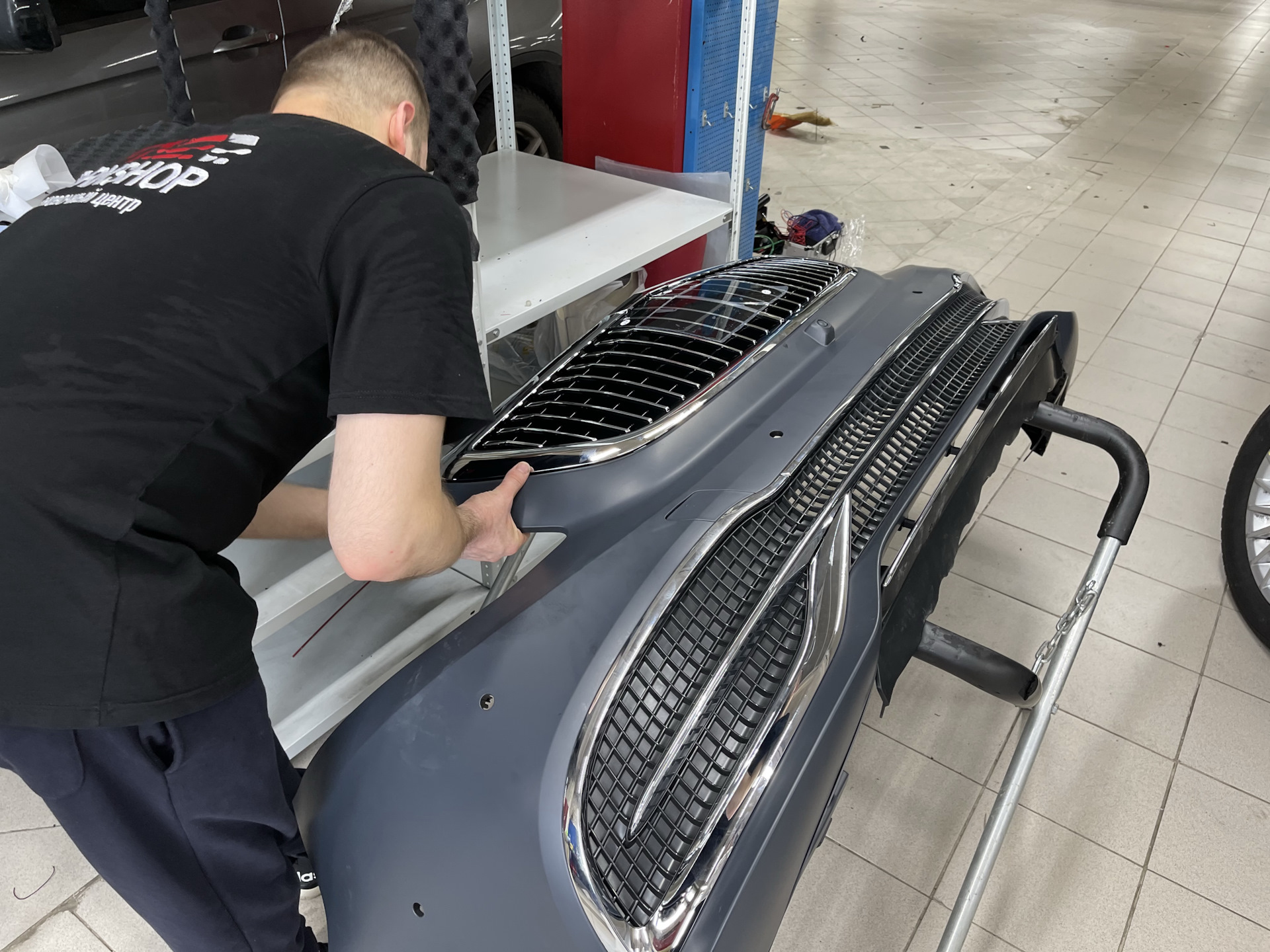 Снимаем оригинальные бампер и решётку:
