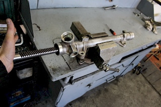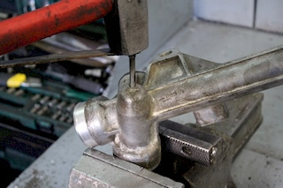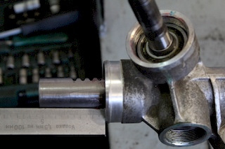8. Переворачиваем рейку. Размечаем и сверлим так, чтобы попасть в обойму игольчатого подшипника. Выбиваем игольчатый подшипник.