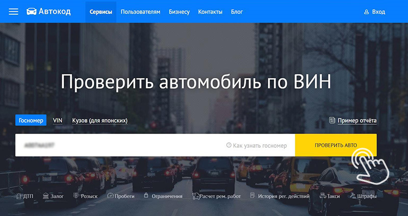 Захожу на главную страницу сайта «Автокод», вбиваю госномер (можно VIN, как вам удобно) и заказываю проверку.