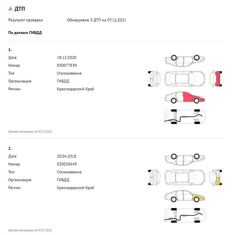 Также отобразилось ДТП. В последней аварии машина получила серьезные повреждения.