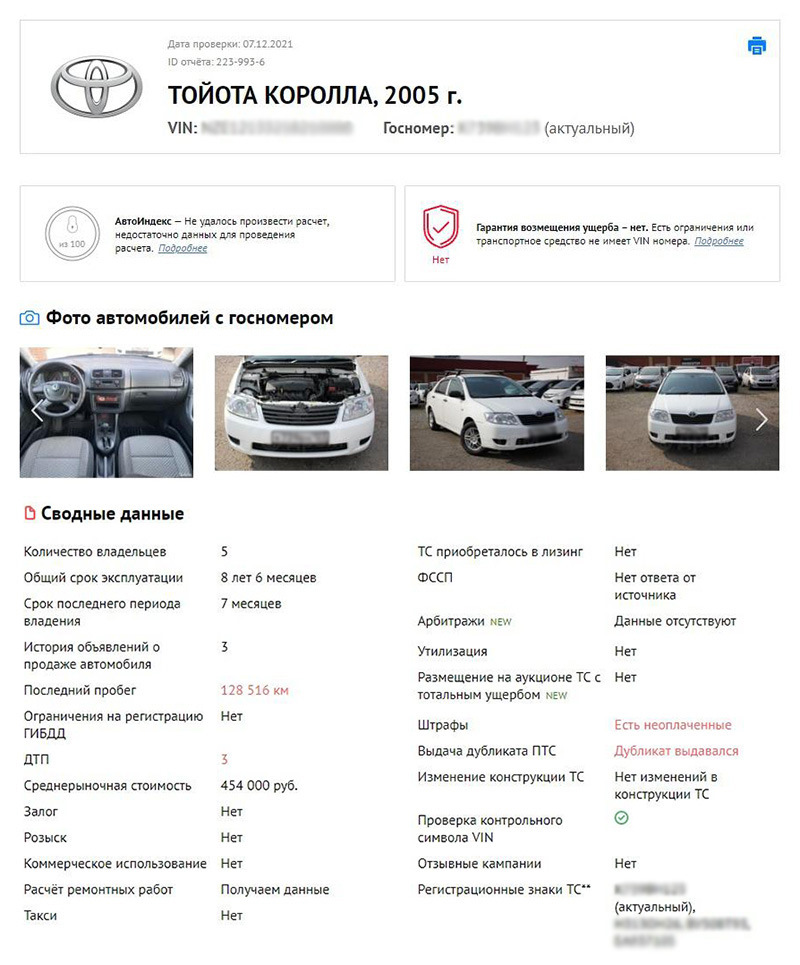Если вы покупаете автомобиль и хотите проверить, есть ли у него задолженность по штрафам и другие юридические и технические проблемы, можно воспользоваться сервисом проверки истории автомобиля «Автокод». Узнать о штрафах ГИБДД можно по госномеру или VIN-коду автомобиля. Отчет сформируется всего за 2 минуты.