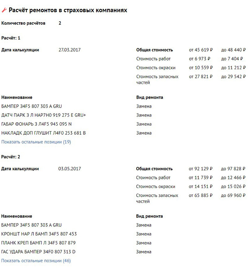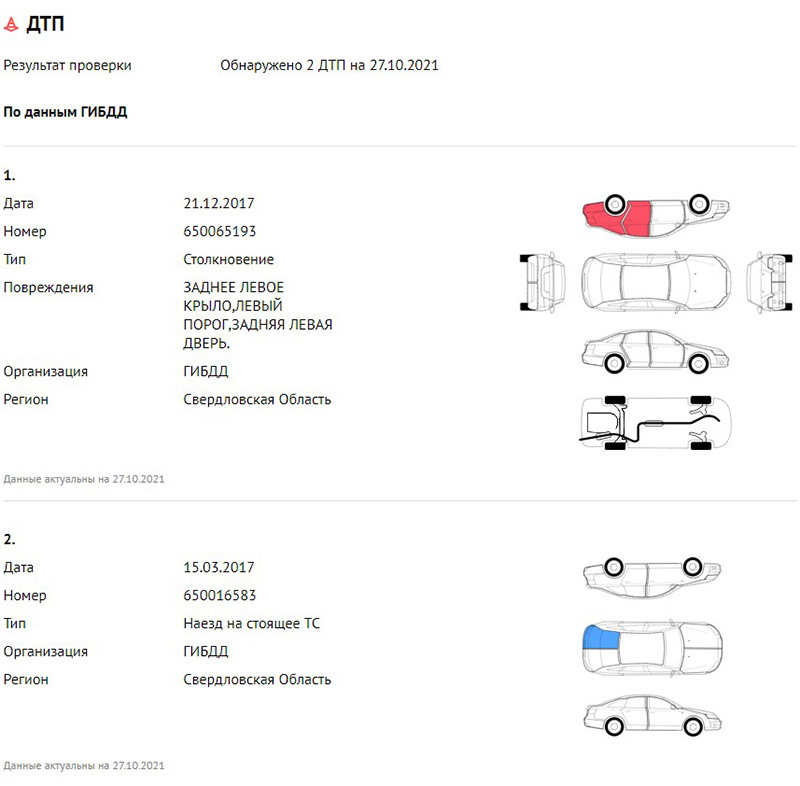 В отчете «Автокода» содержатся сведения не только о пробеге авто, но и об участии в ДТП, расчетах ремонтных работ, нахождении в лизинге, залоге, угоне, работе в такси или каршеринге, неоплаченных штрафах ГИБДД, запрете на регистрацию, количестве собственников и многом другом.