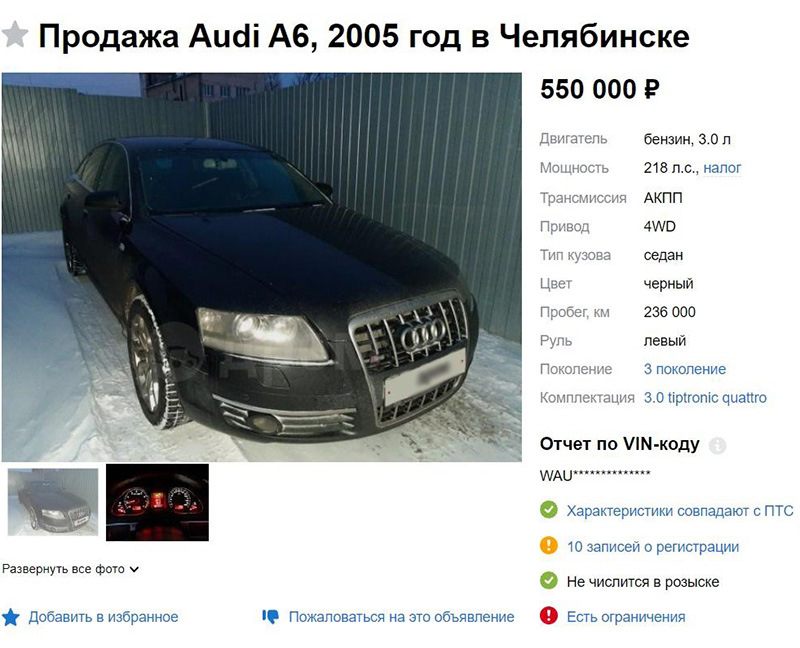 Допустим, я хочу узнать, сматывали ли пробег у этой Audi A6.
