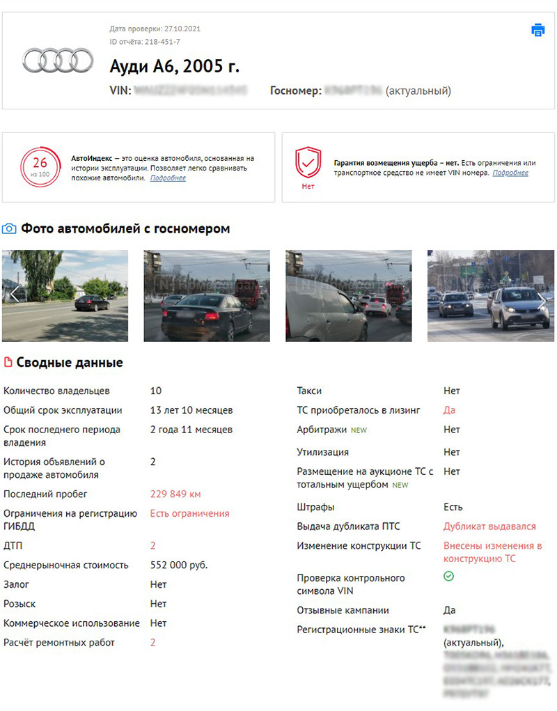 Пробиваю авто и через пару минут вижу всю подноготную машины.