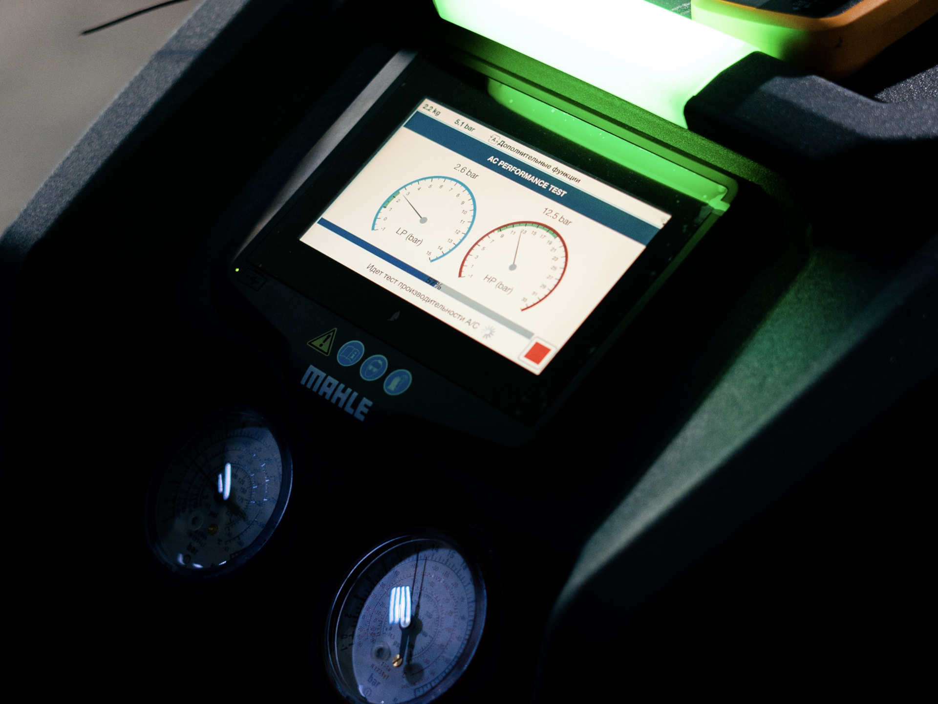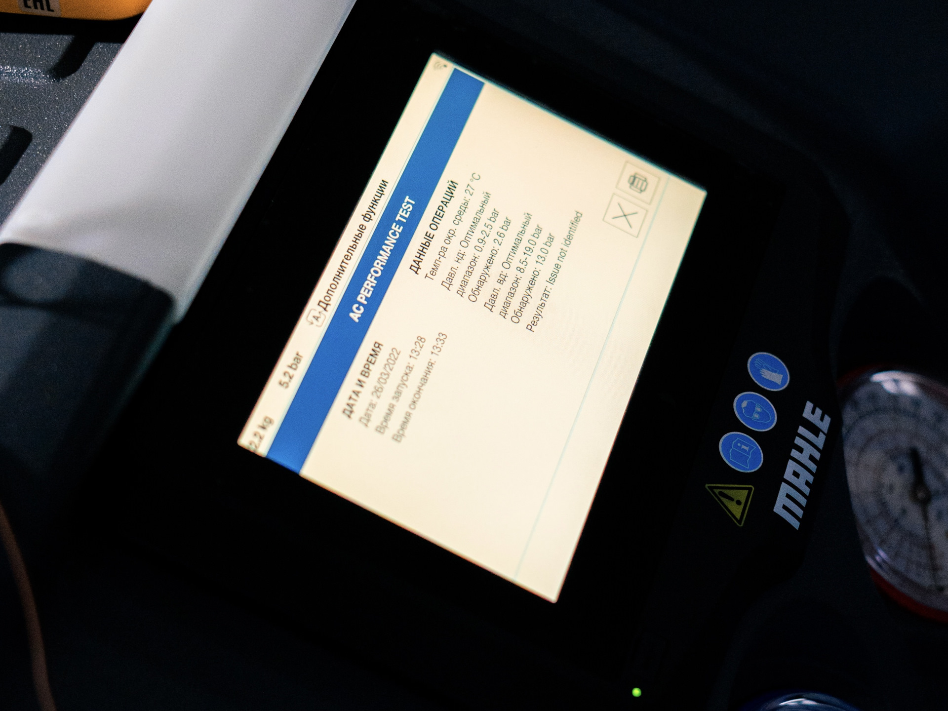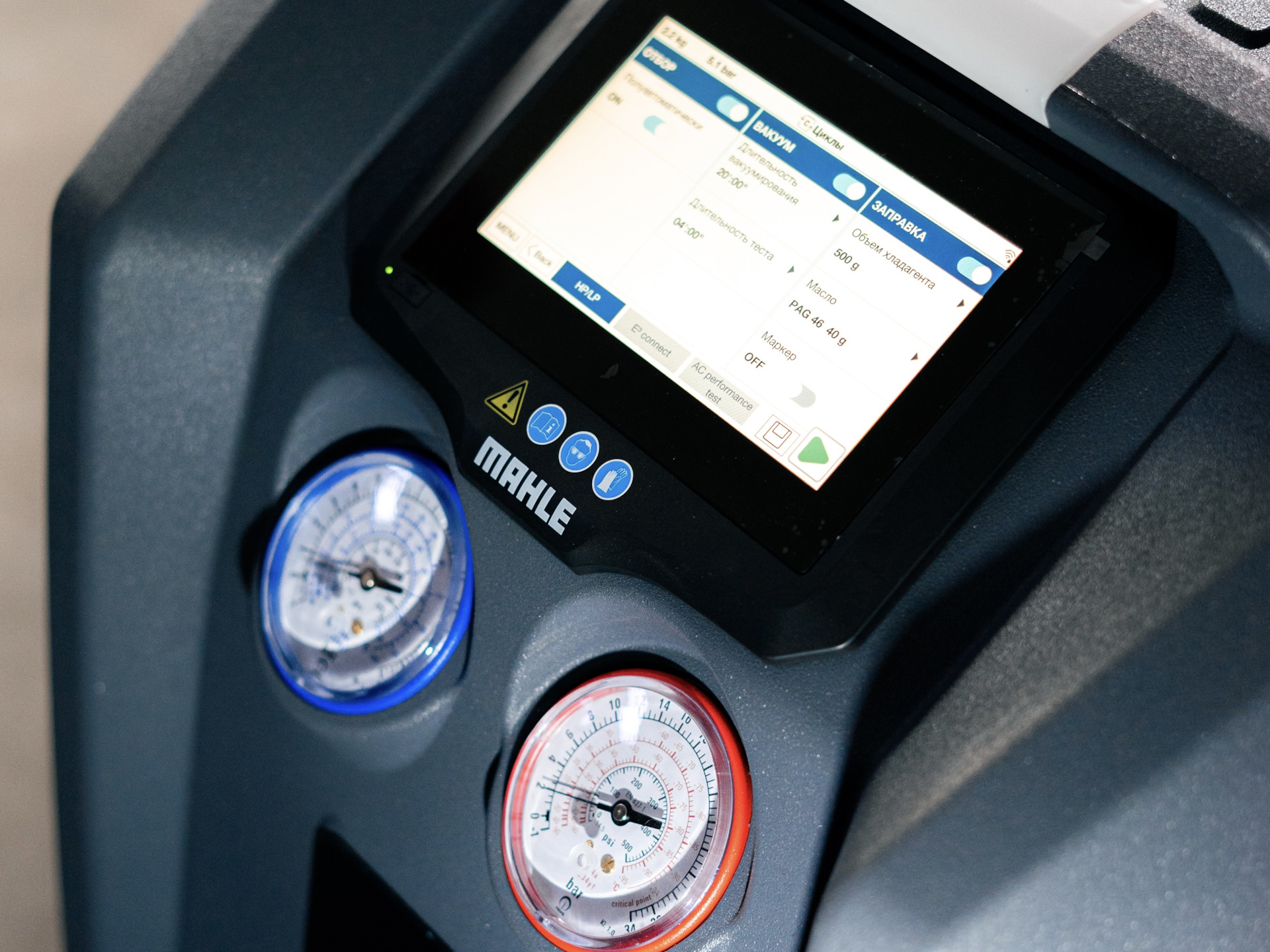 На данном этапе идет проверка системы на герметичность и расчет остатка хладогента. И все автоматизировано! «Уличные заправщики» и «специалисты» с Авито зачастую пренебрегают проверкой на герметичность. А ведь обслужить негерметичную систему кондиционирования – это пустая трата денег. MAHLE Arctic Pro ACX 350 прежде чем заправить, полностью проверяет систему.