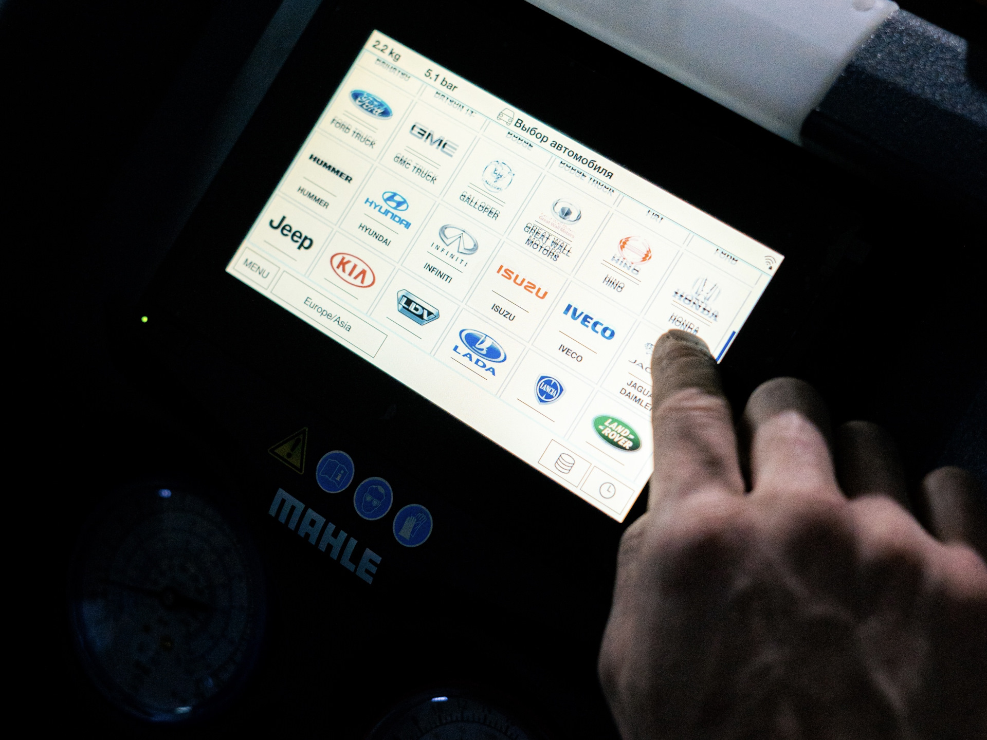 1. MAHLE Arctic Pro ACX 350 знает, какие должны быть показатели на вашем автомобиле. Первым этапом работ после подключения устройства идет выбор марки и модели обслуживаемого авто. Аппарат содержит целую базу данных для всех автомобилей!
