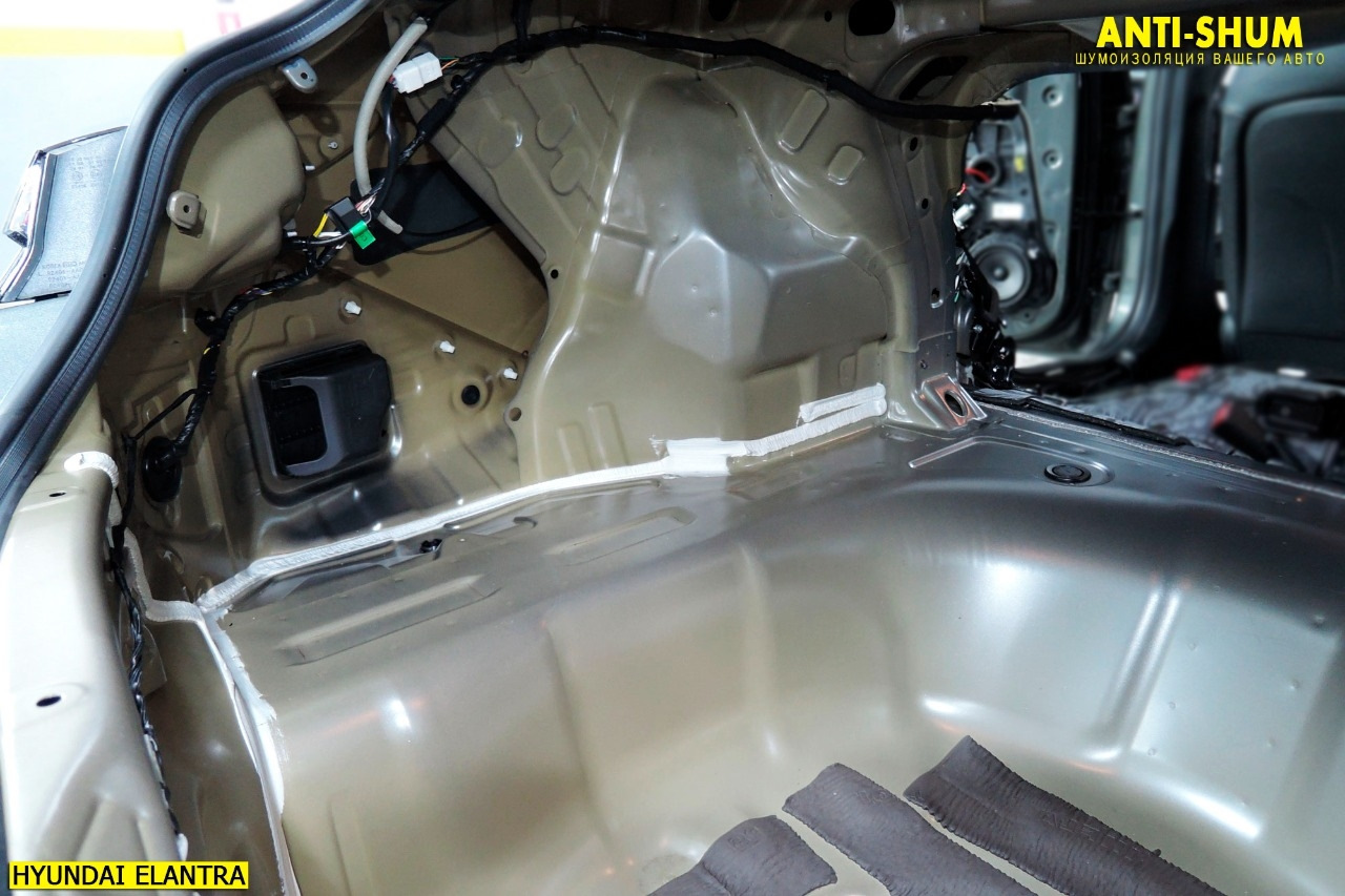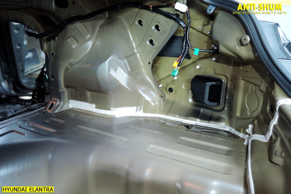 В багажнике первым слоем на арки наносим Профи плюс, в крылья — СТП аеро 2мм, в нишу запасного колеса- Аеро Плюс 3 мм