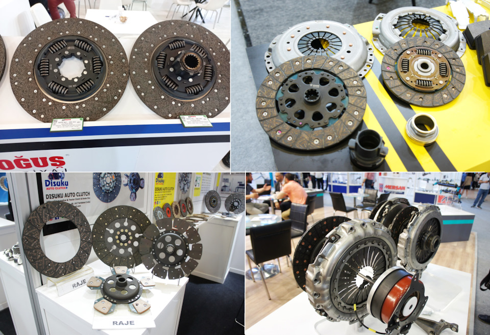 Да, турки научились подавать товар. Например, анатомия классического узла сцепления завораживает. Ровная фрикционная накладка с синусоидальной укладкой нити. Пластинчатые пружины ведомого диска – смотрите, какая любопытная наборная механика. Демпферные пружины с антикоррозионным покрытием. Корзина «с декольте» по лепесткам для наглядности… На выставке множество таких инсталляций